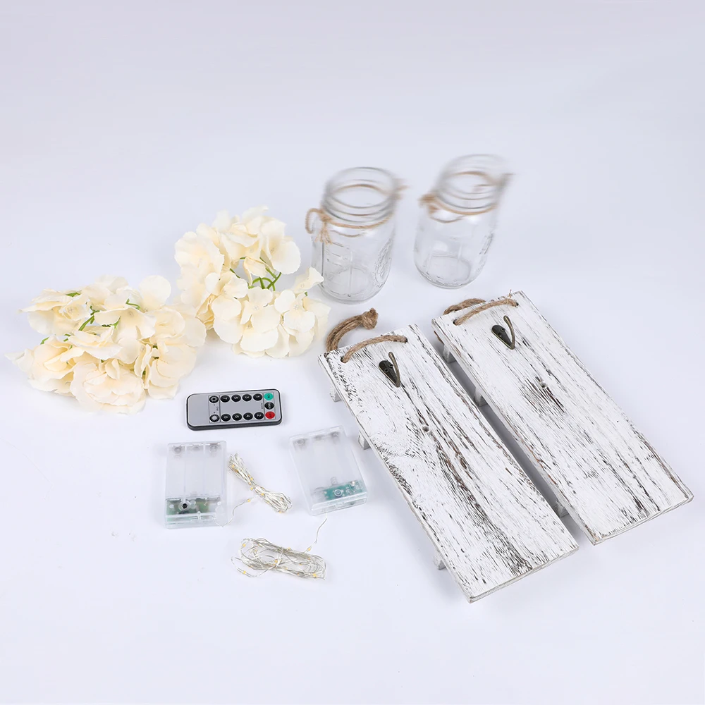 Посылка: 2 * банка Mason, 2 * цветы (54 9 # оранжег), 2 * гирлянда (2 м 20 лампа теплый белый), 2 * доска, батарея в комплект не входит