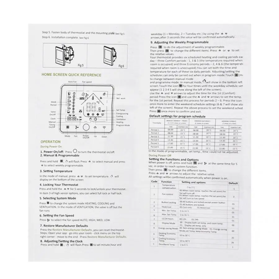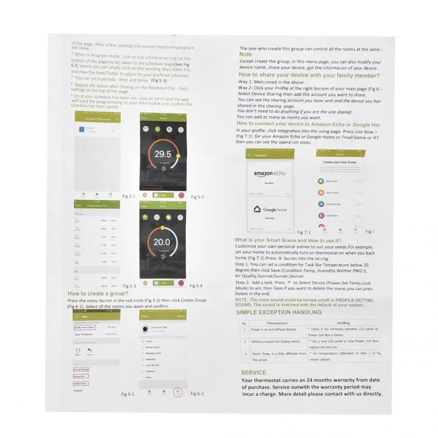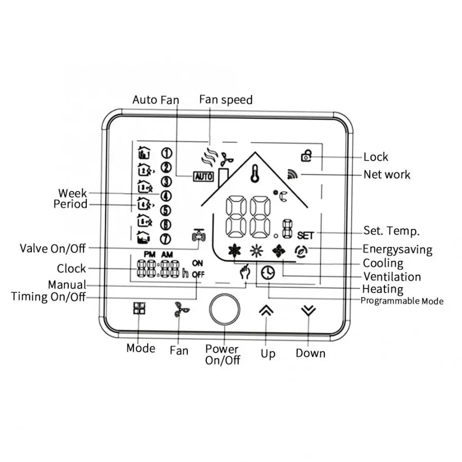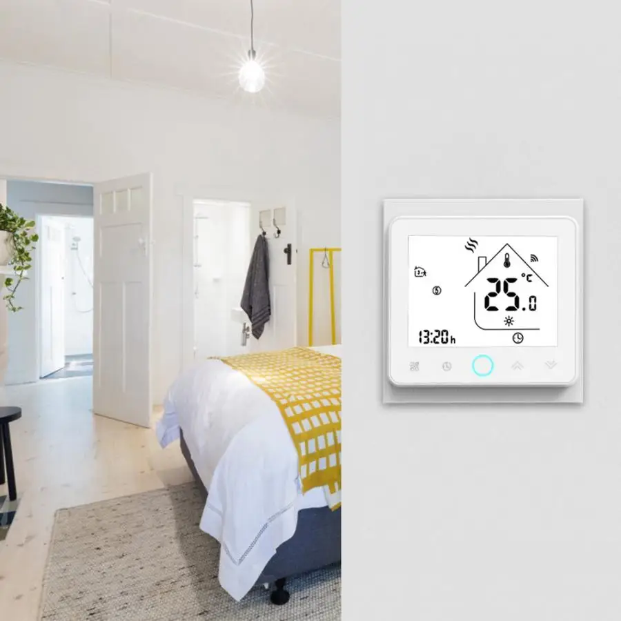 Подключение Wi-Fi включено для Amazon Echo/Google Home/Tmall Genie/IFTTT для проведения голосового управления, предоставления поддержки совместного использования устройства для вашей семьи или друзей. Термостат с сенсорным экраном предназначен для включения/отключения контроля вентиляторов и клапанов в системах кондиционирования воздуха по сравнению с комнатной температурой и установкой температуры для комфорта и экономии энергии. Точный и комфортное управление держит температуру и заданной температуры в 0,5 °C. Хранение данных для отключения, синхронизации и программирования, управление температурой в одно касание движется в любое время в соответствии с графиком программы. ЖК-термостат: большой дисплей легко читается-даже в темноте это миниатюрный термостат на основе микропроцессора с ЖК-дисплеем.