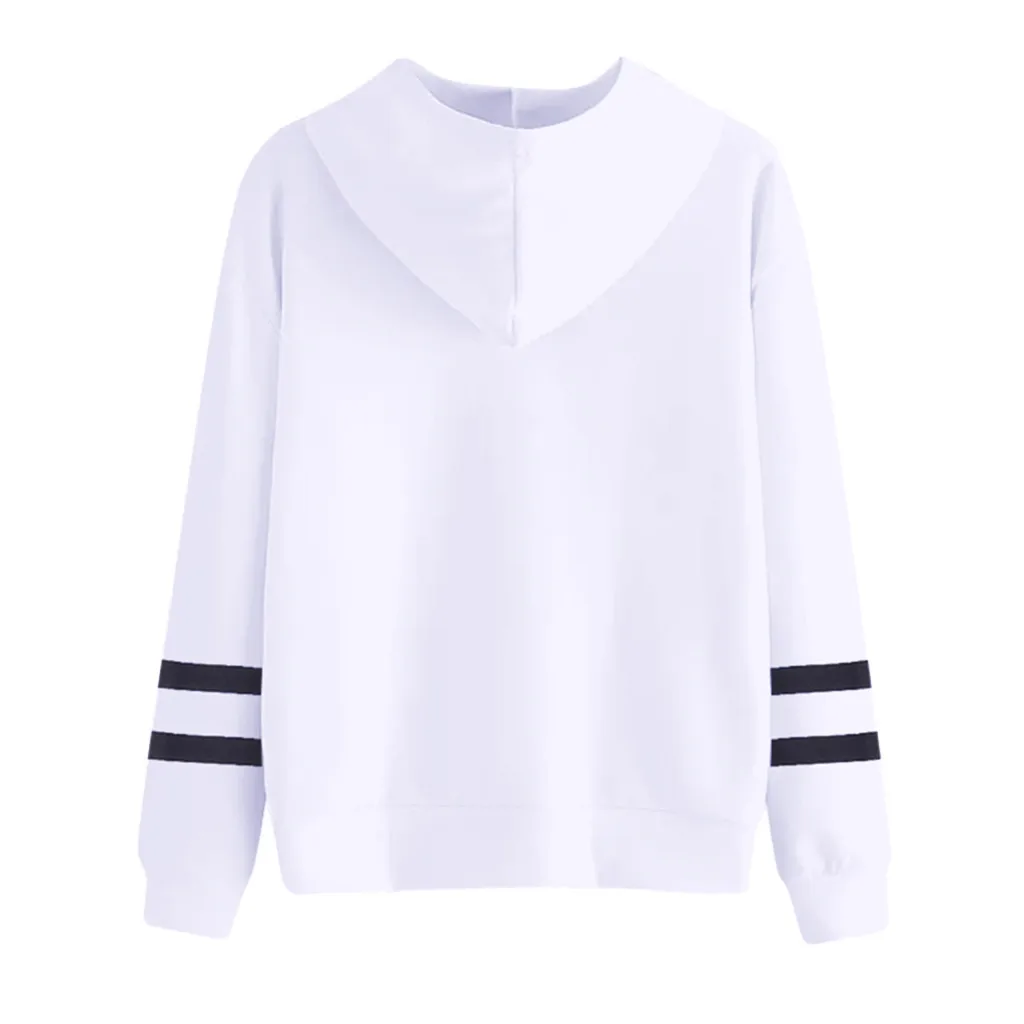 Топ с длинными рукавами на День святого Валентина, милая женская блузка с героями мультфильмов, свободная Толстая флисовая толстовка в полоску с круглым воротником, топы B35
