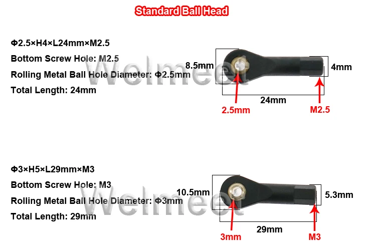 Φ2.5 × H4 × l24мм × M2.5, Φ2 × H4 × l25мм × M2.5