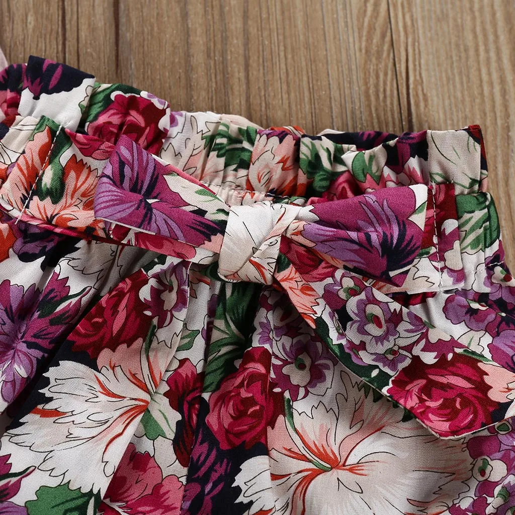 Комплект одежды из 3 предметов для маленьких девочек, боди с оборками + короткие штаны с цветочным принтом + повязка на голову с бабочкой, комплект одежды для маленьких девочек