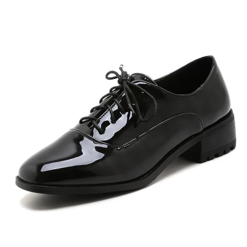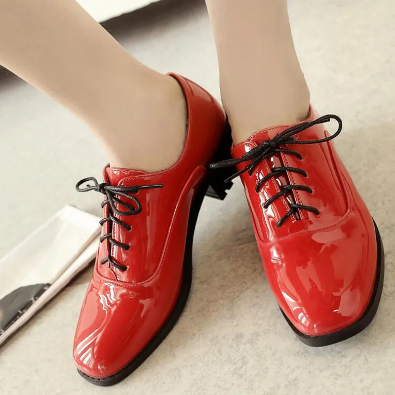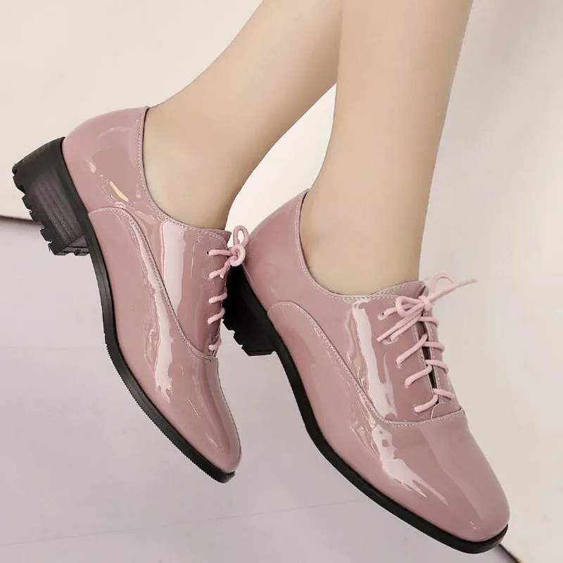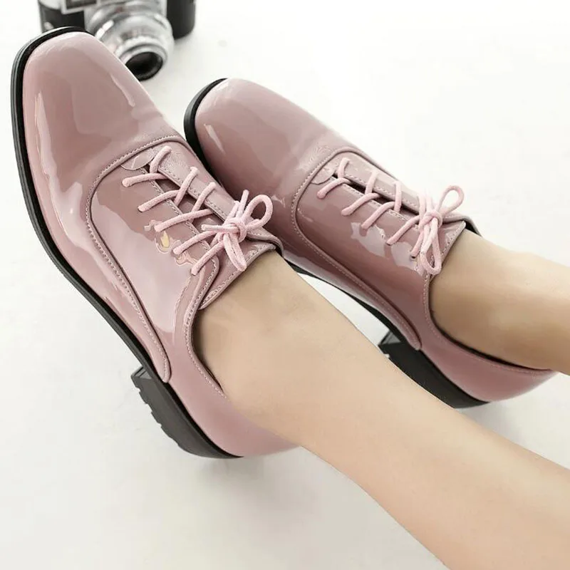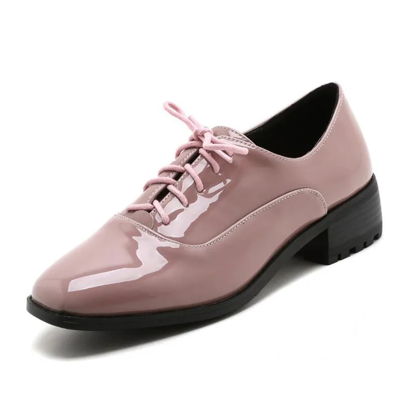 Новые Демисезонные женские туфли-оксфорды из лакированной кожи; повседневная обувь на плоской подошве со шнуровкой; женские туфли на плоской подошве с квадратным носком; цвет черный, розовый, красный