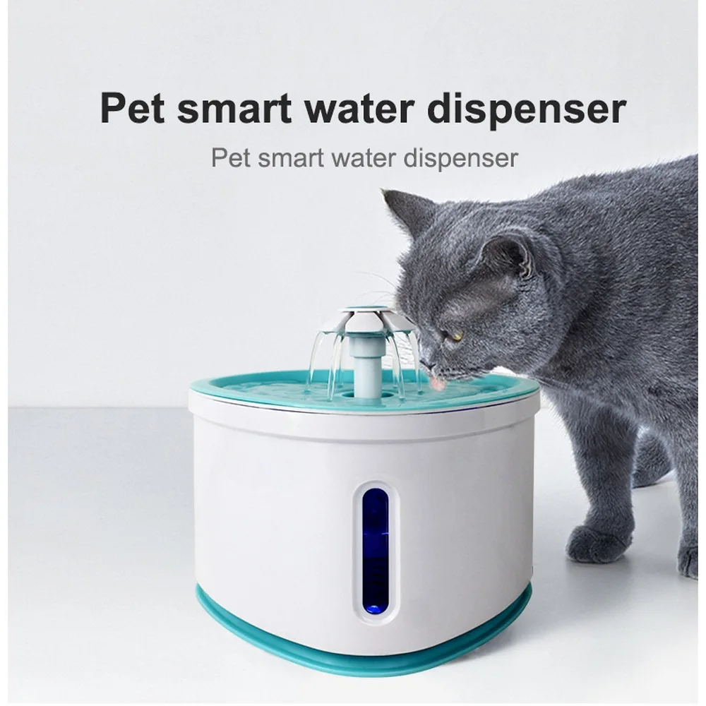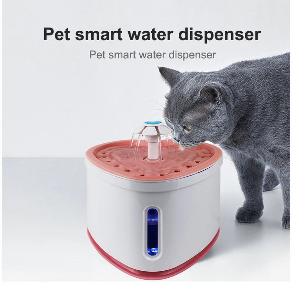 Трёхдюймовый диспенсер для воды для домашних животных, светодиодный фильтр из бамбукового угля с цветочным узором, бесшумный диспенсер для воды для кошек и собак