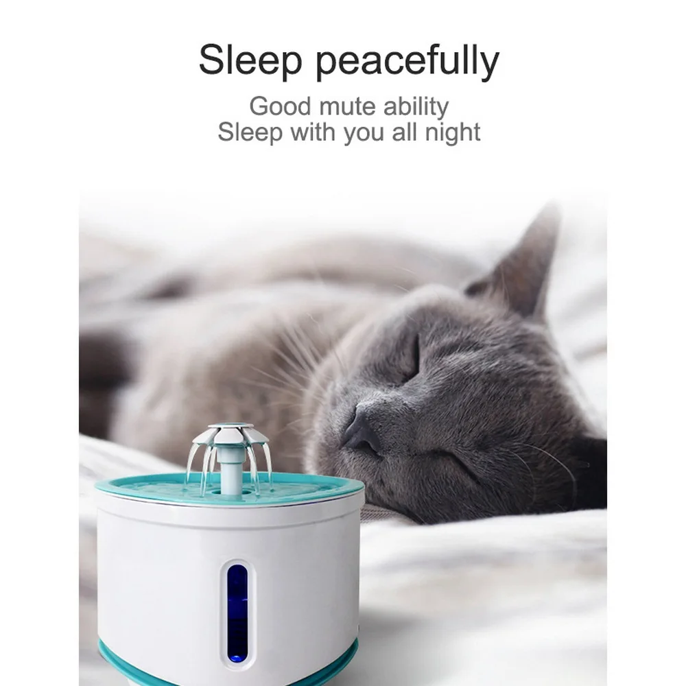 5. Уникальный дизайн расхода воды и цветочный узор притягивают внимание питомца, так что питомцы могут наслаждаться интересной питьевой водой, а емкость воды в 2 литра значительно помогает питомцу пить больше воды.