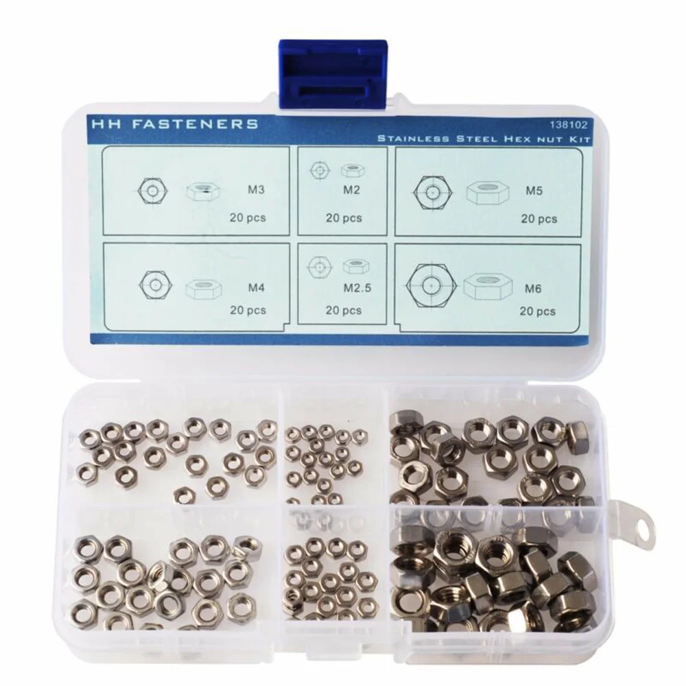 * Шестигранная гайка комплект классификации нержавеющая сталь M2 M2.5 M3 M4 M5 M6 120 шт./компл.