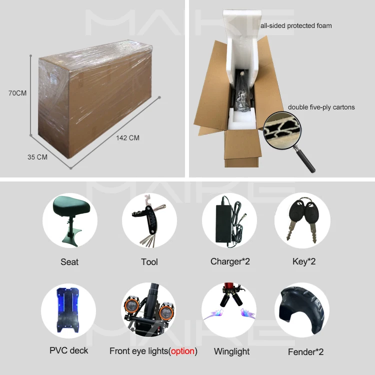 Максимальная нагрузка200 кгМаксимальная скорость95 км/чКласс способность55 °Время зарядки6-10 часовЦветЧерный/золотой/красныйСкладной размер130*33*59 смРазверните Размер127*65*135 смРазмер упаковки142*35*70 смДля езды на велосипеде в ширину25 смНапряжение60 VТорможенияПередний и задний масляный тормоз + EBSЗарядное устройствоДвойной зарядные устройстваВиброустойчивыйПередняя Пневматическая подвеска; задняя пружинная подвескаСистема освещенияОдин дБ головной светильник, двойной задний тормоз, мигающий светильник, Поворотный Светильник s, четыре глаза Орла светильник s, боковой светодиодный светильник sРазмер шин8 дюймовДорожный шинВнедорожные шиныМатериалАлюминий, ферросплав1) передний и задний двойной масляный тормоз, это безопаснее для вас, когда вы едете на ней на высокой скорости.