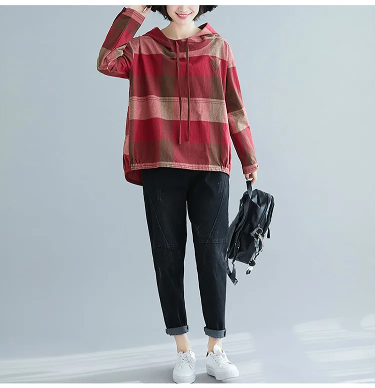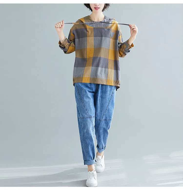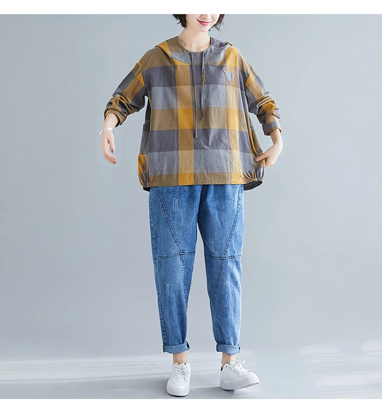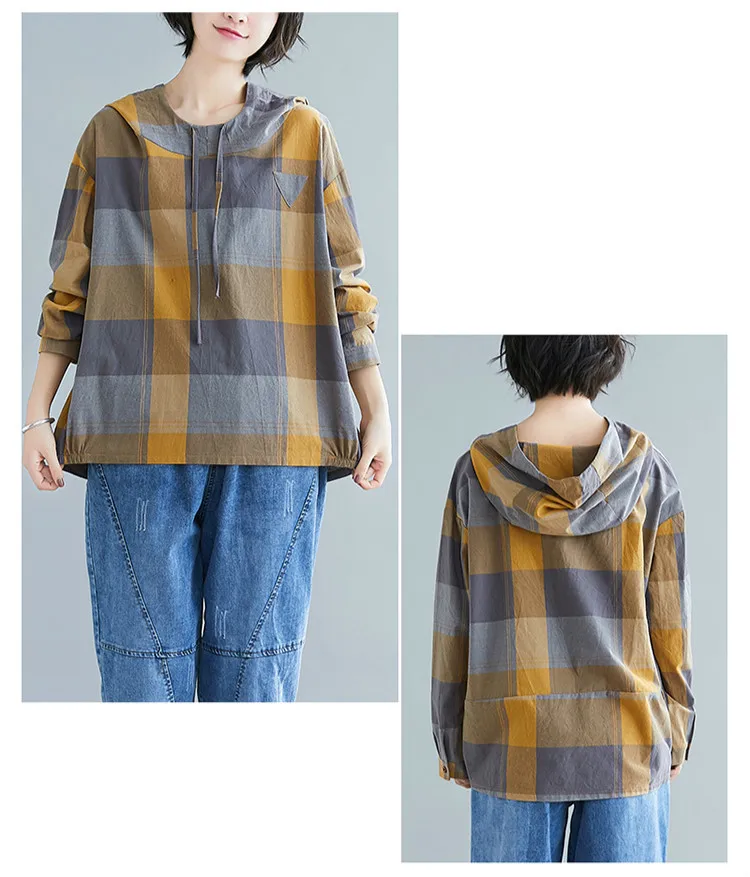 Модные весенние хлопковые рубашки в клетку с капюшоном