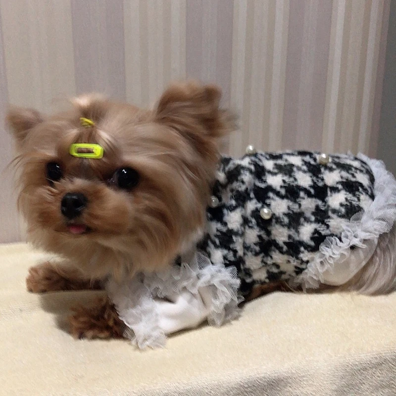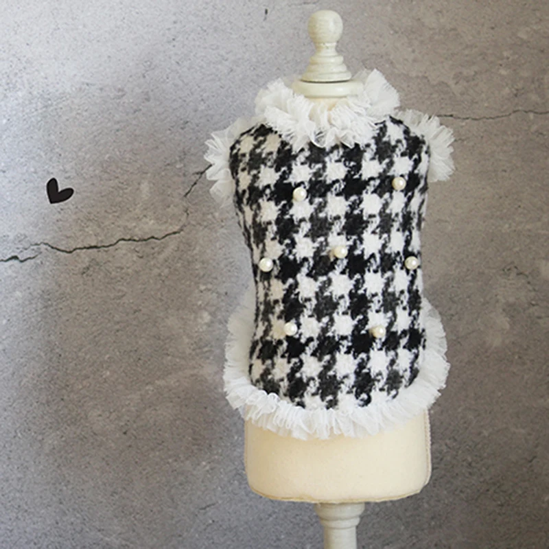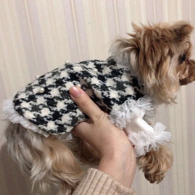 Зимняя одежда для собак, теплая шерстяная тканевая куртка для маленьких собак, юбка, украшенная жемчугом, кружевной вырез, пальто для щенков, чихуахуа, пуделя