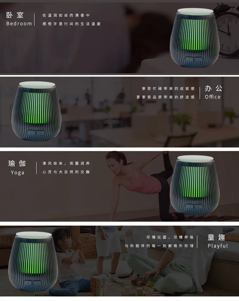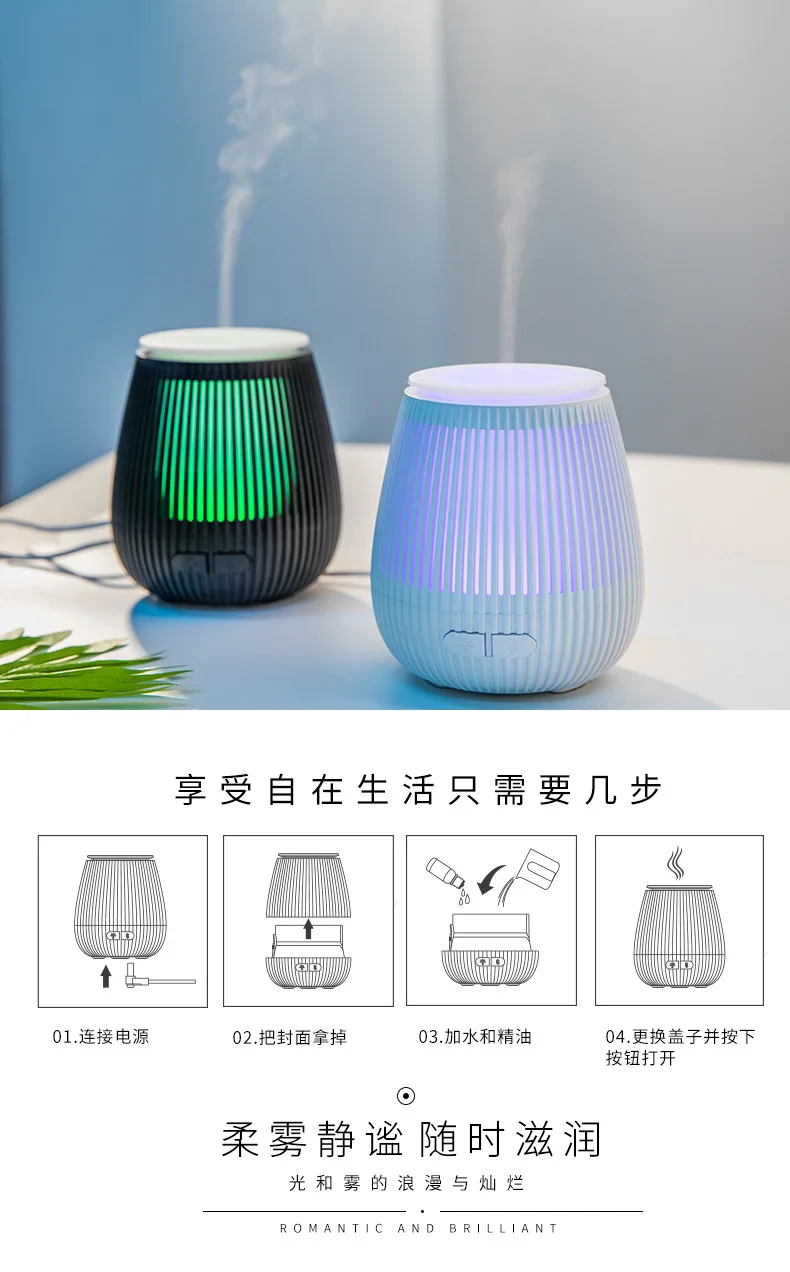 1. Подключите питание 2. Откройте верхнюю крышку. 3. Не добавить более 100 мл воды 4. Добавьте 2 ~ 3 капли эфирного масла. 5. Закройте крышку 6. Начните использовать продукт