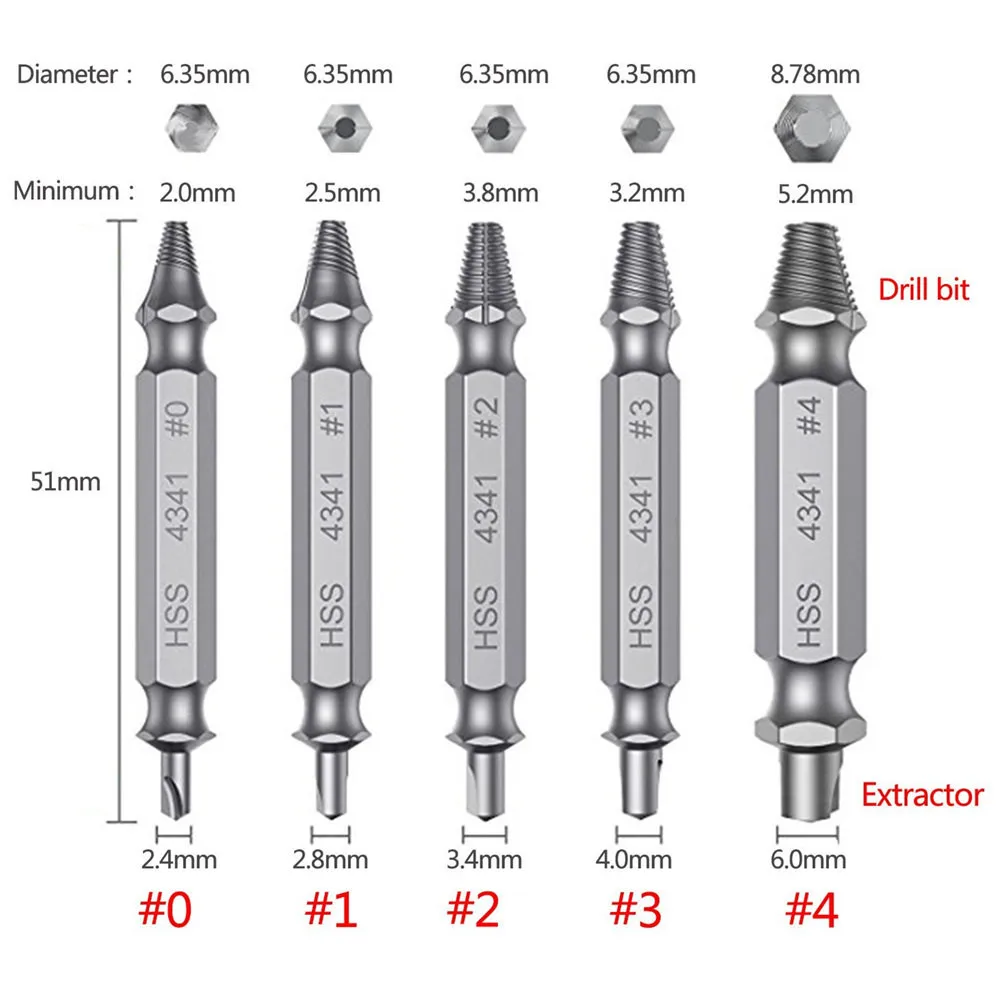 5 шт поврежденный Винт экстрактор набор поврежденный винт и болт Extractor Набор