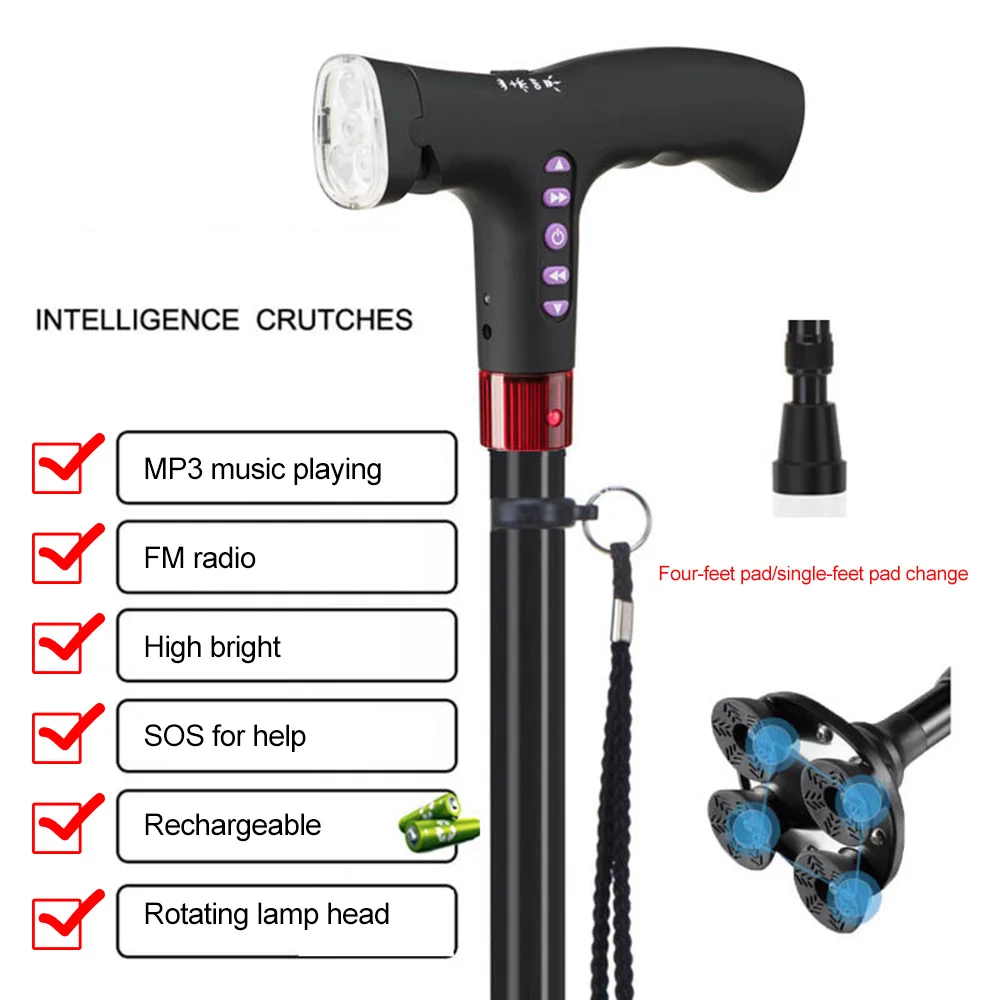 Трость специально разработана для пожилых людей, легкая и прочная, телескопическая и противоскользящая. Что еще более важно, это может автоматически сигнализировать о падении пожилых людей. Также функция fm-радио и MP3 делает жизнь более богатой для пожилых людей.