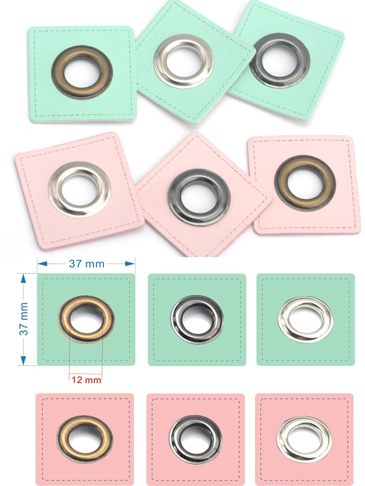 30 шт./лот 37 мм квадратный розовый/Мятный искусственная кожа пришить значки патч этикетки + Внутренняя 12 мм Металлические латунные люверсы Бесплатная доставка