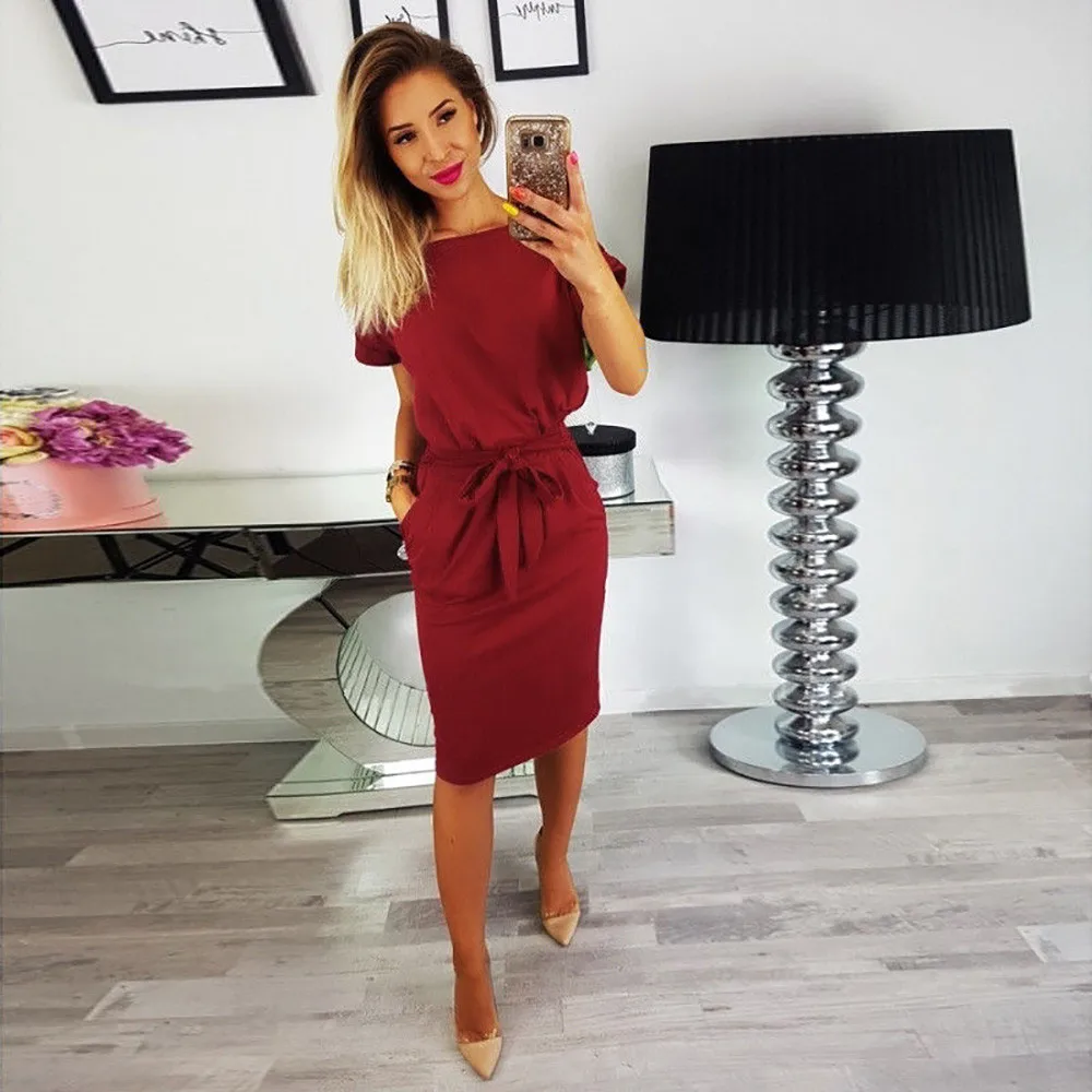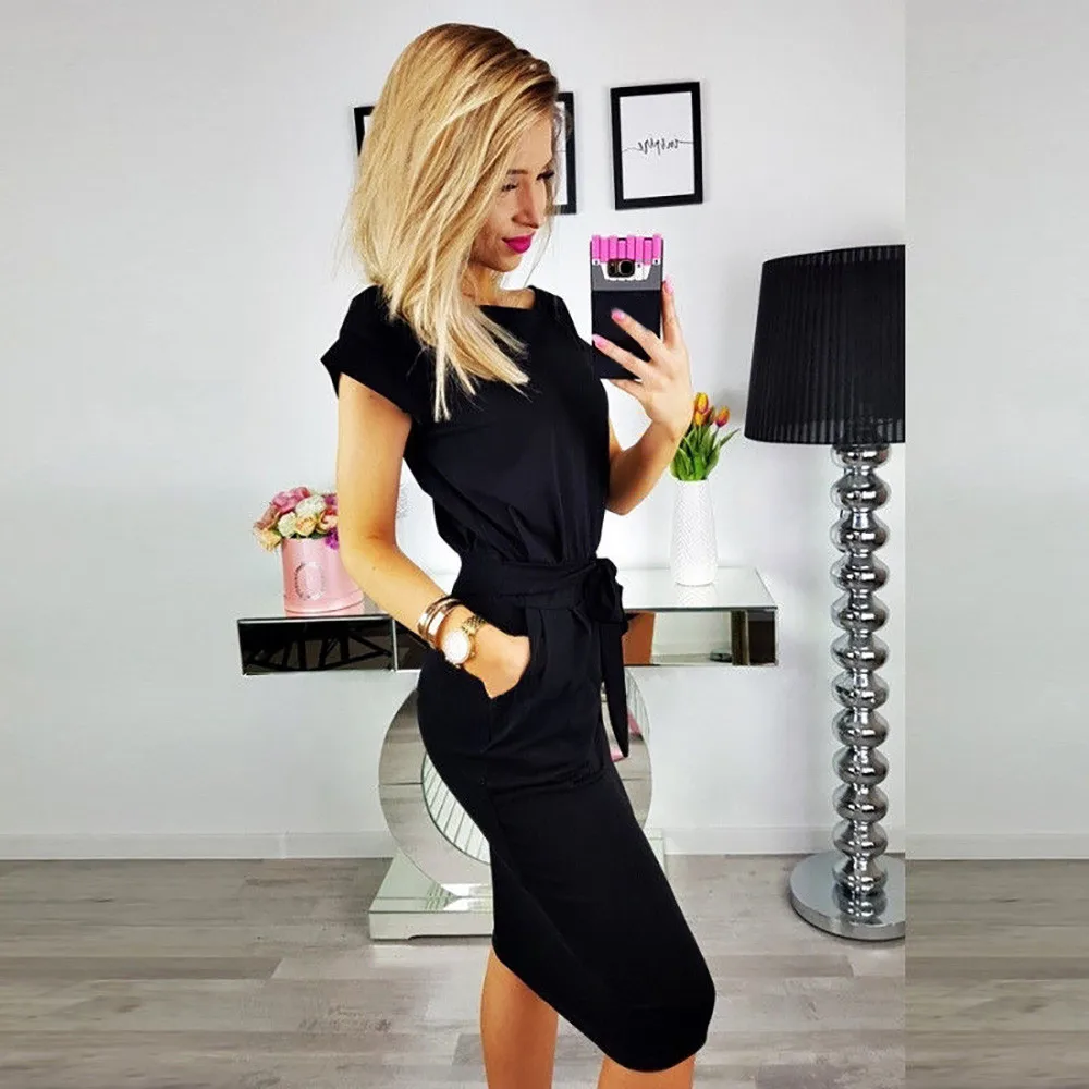 Женское повседневное летнее вечернее короткое платье с карманами и коротким рукавом