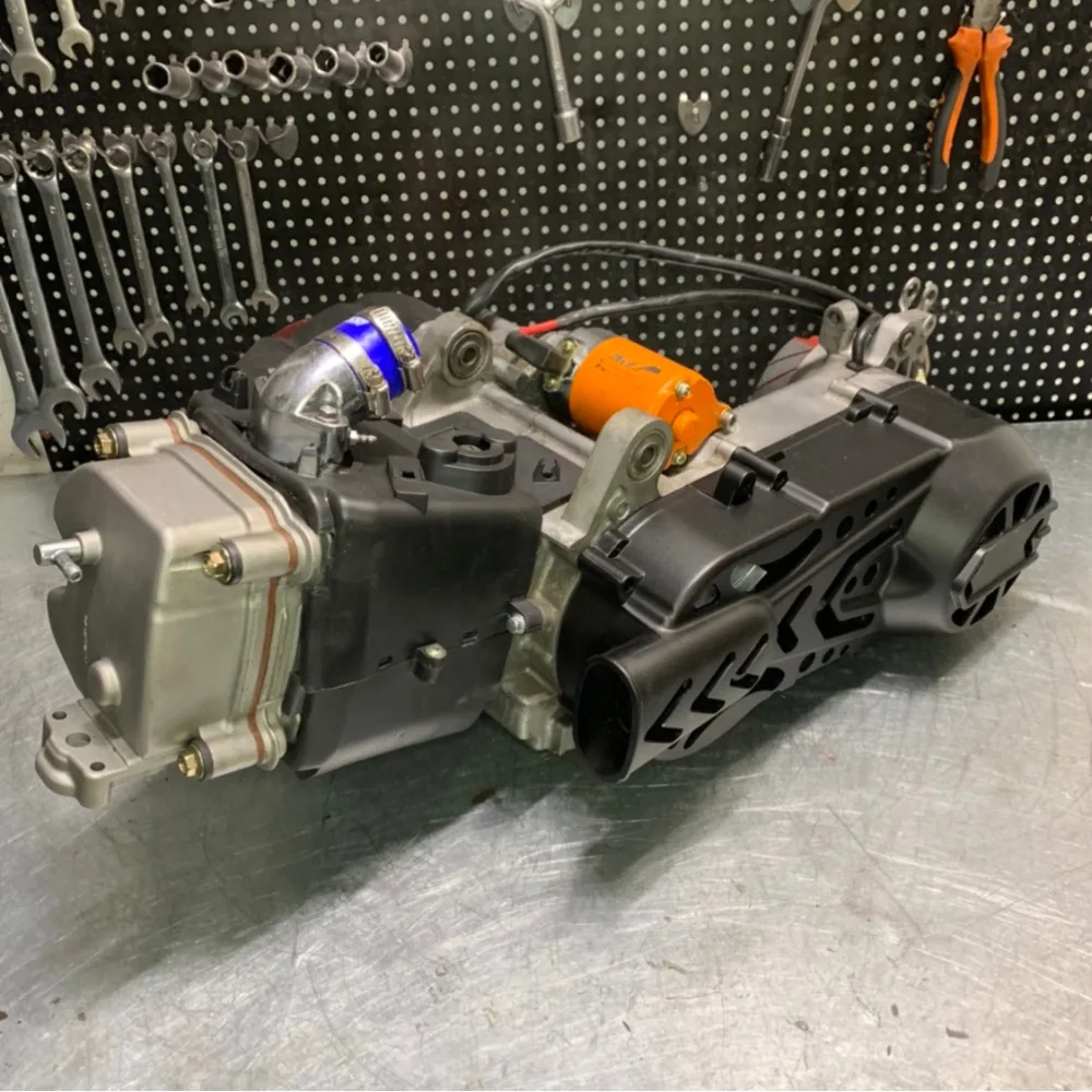 Полный комплектПоставляется сБольшая скважинаКомплект цилиндров с поршнем63 мм, 4 клапанаГоловка цилиндра, коленчатый валДлинный ход + 4 мм, МощныйСтартер, сильный бендикс, впускной коллектор28 мм, Гоночный клатч,БольшойВариатор,ДлинныйРемень.