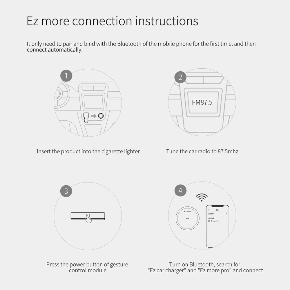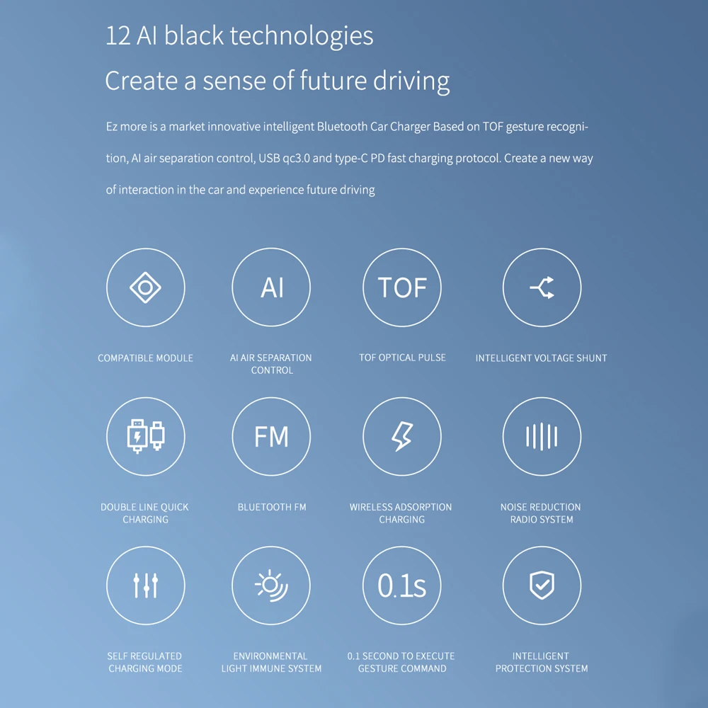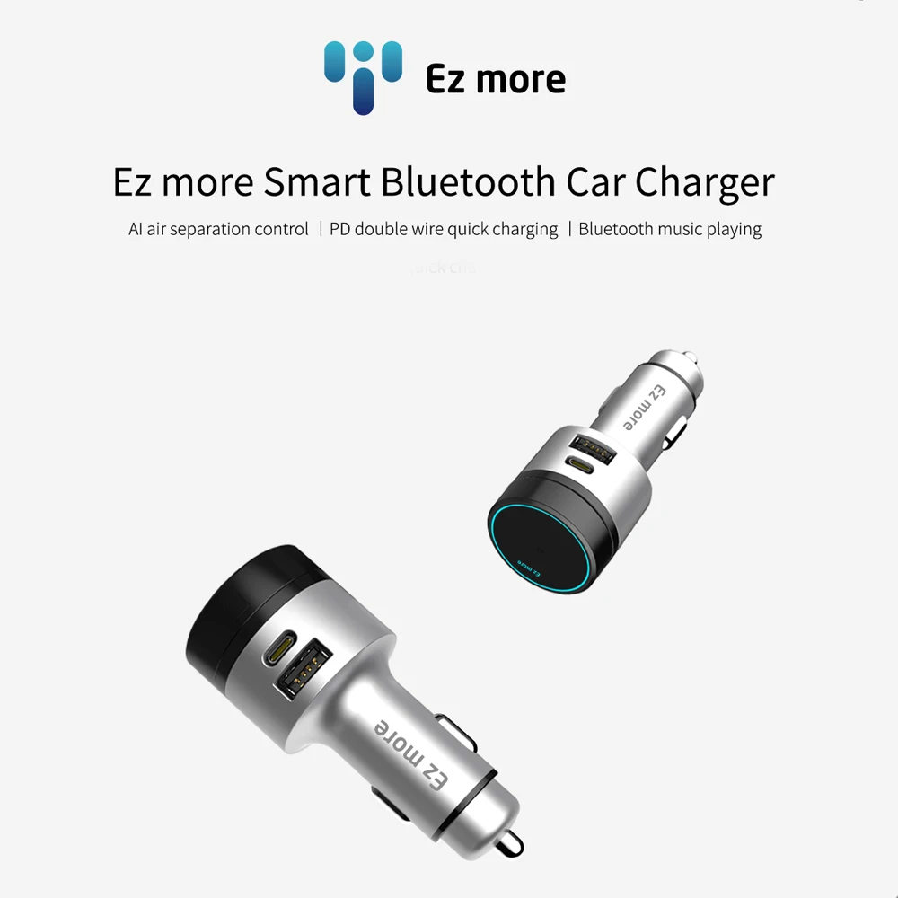 Ez More автомобильное зарядное устройство, беспроводное, умное, Bluetooth, быстрая зарядка, AI, управление музыкой, держатель телефона, двойной провод PD