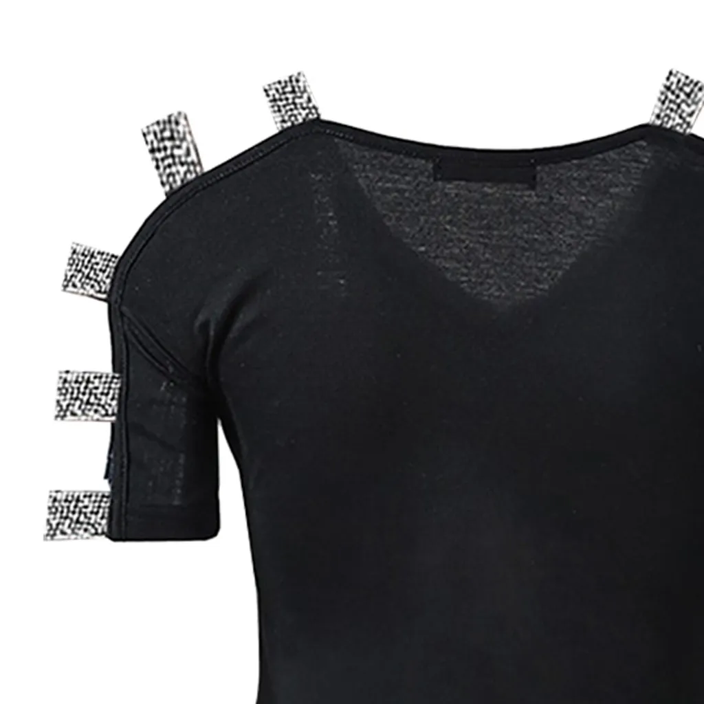 Модная открытая блузка со стразами; Женская Повседневная блестящая блузка с открытыми плечами и коротким рукавом; праздничный пуловер; футболка; топы; пикантные базовые рубашки