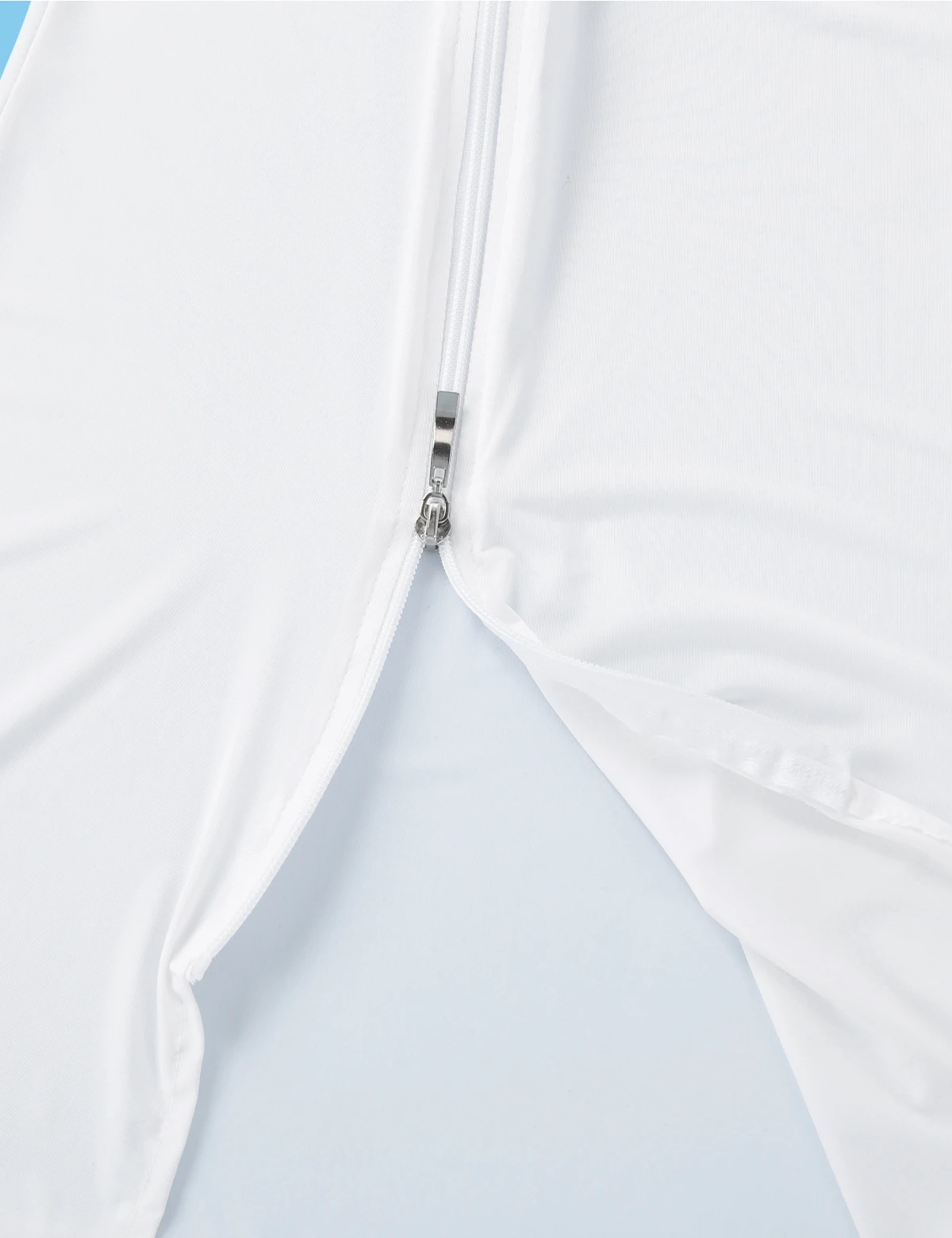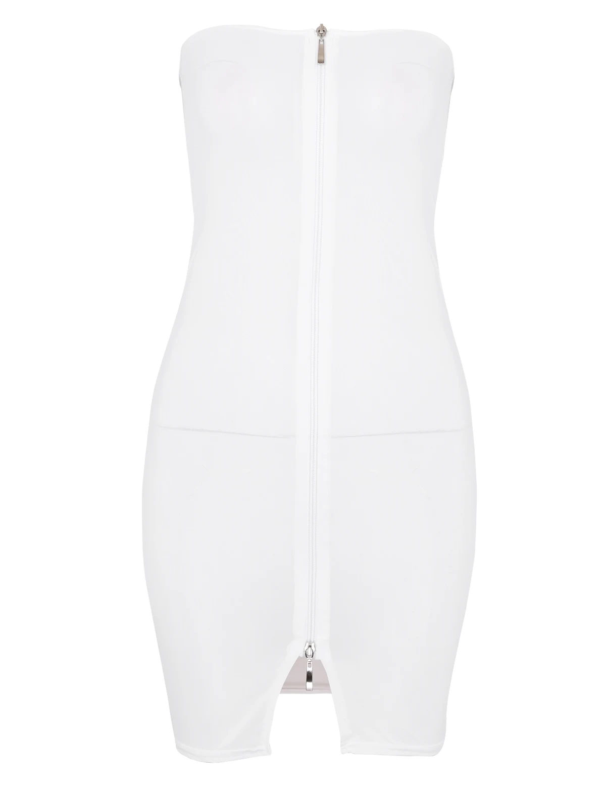 Полупрозрачный дизайн, без бретелек и двусторонняя молния спереди, плотно прилегает, чтобы показать вашу очаровательную изгиб.