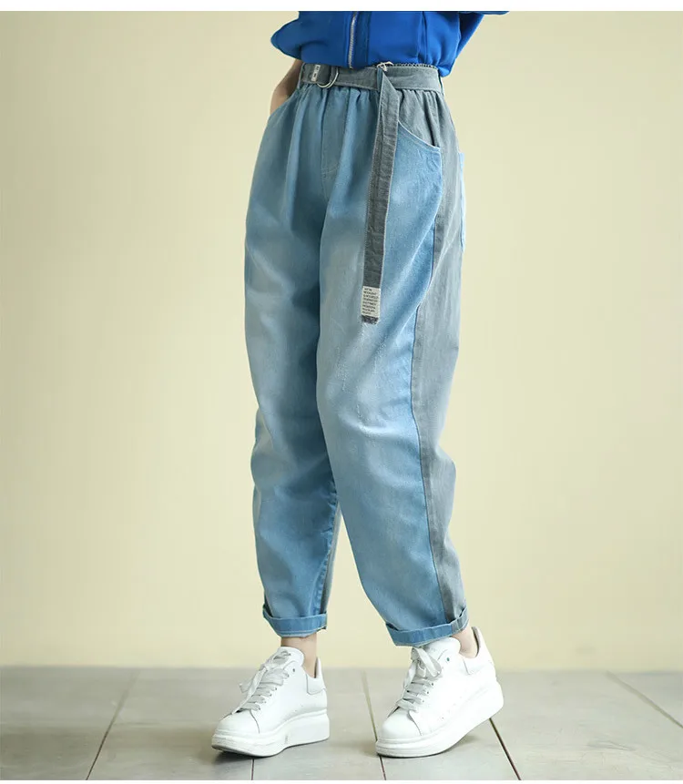 Корейские модные весенние Лоскутные свободные джинсы