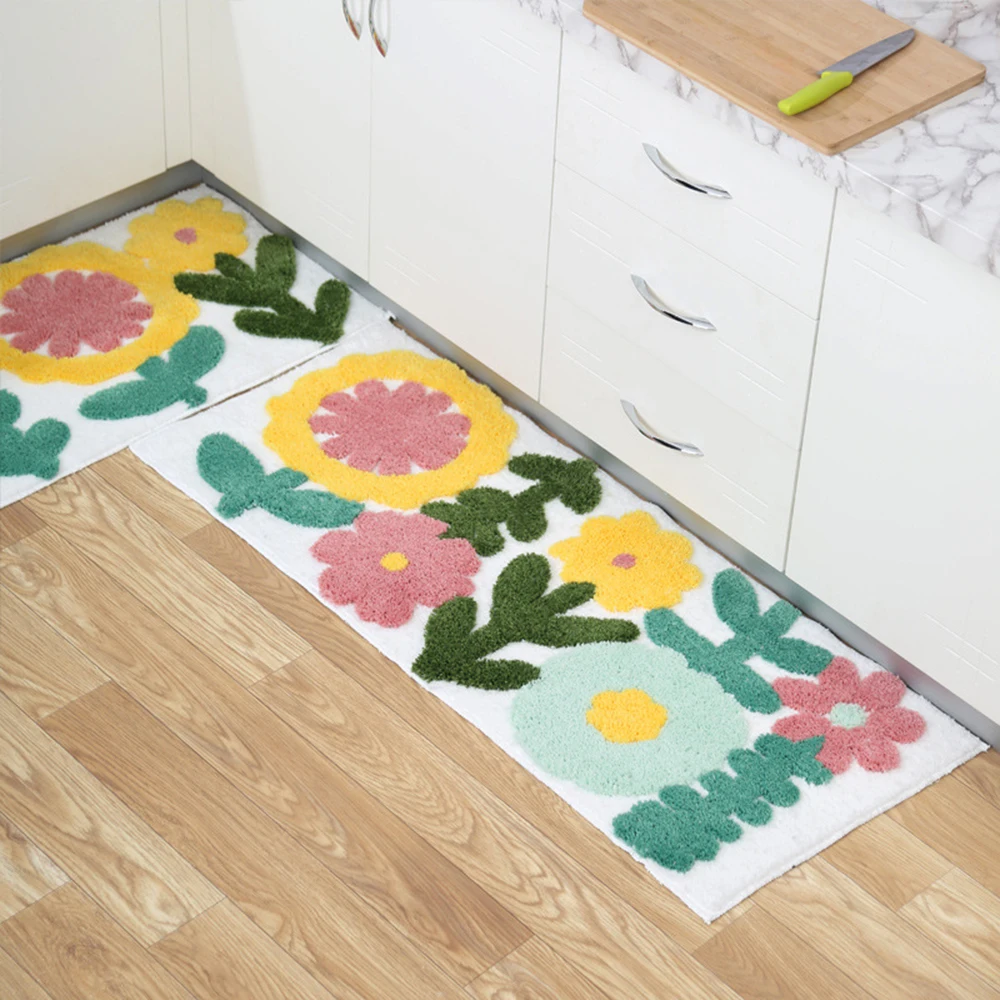 Цветы трава листья пасторальный стиль утолщенный Флокированный Коврик для дома Нескользящие Коврики для дверей ванная комната впитывающие коврики Добро пожаловать коврик
