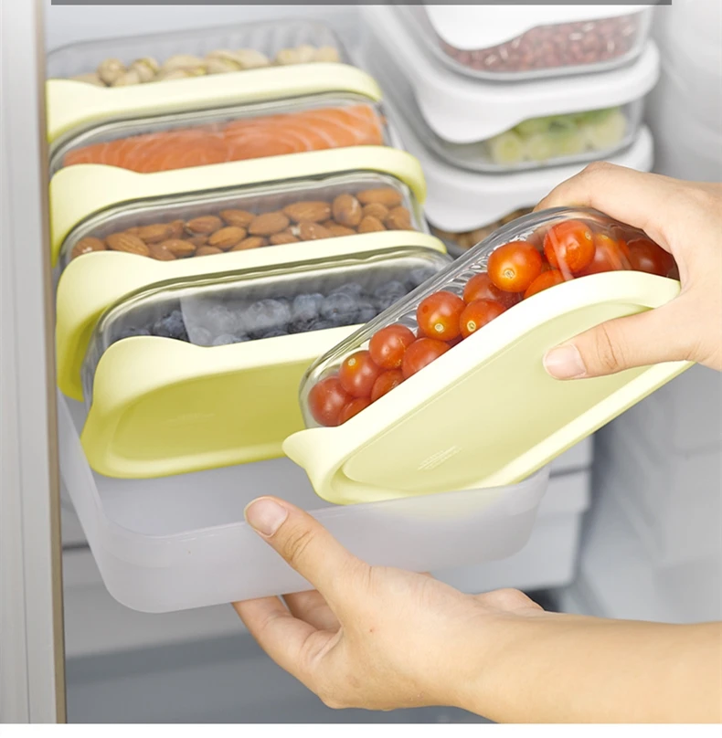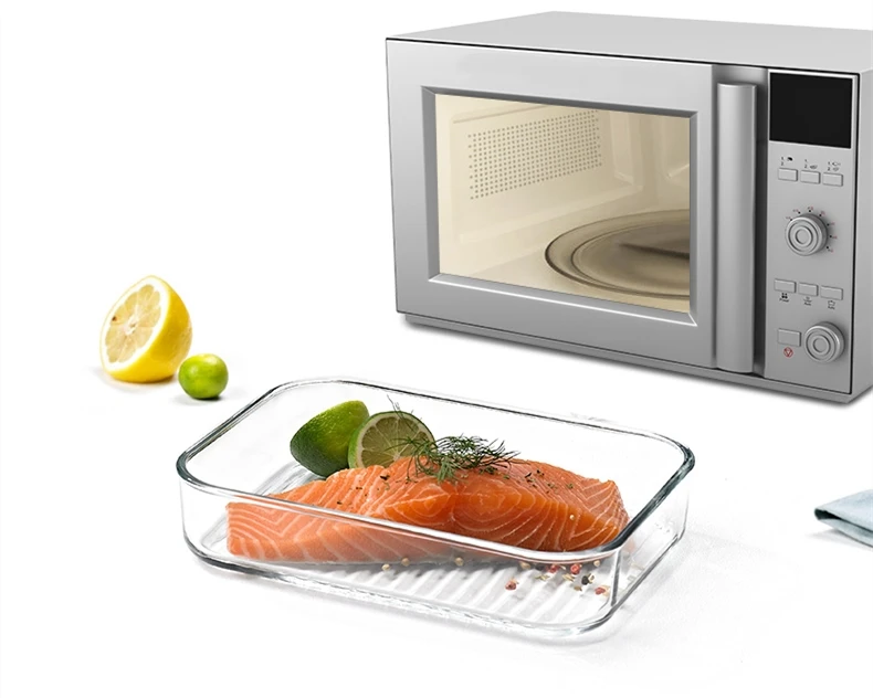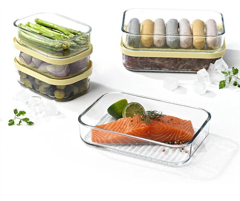 1. Изготовлен из закаленного стекла и пластиковой крышки, этот ящик для хранения продуктов является прочным и легко моется. Доступны микроволновая печь и холодильник.