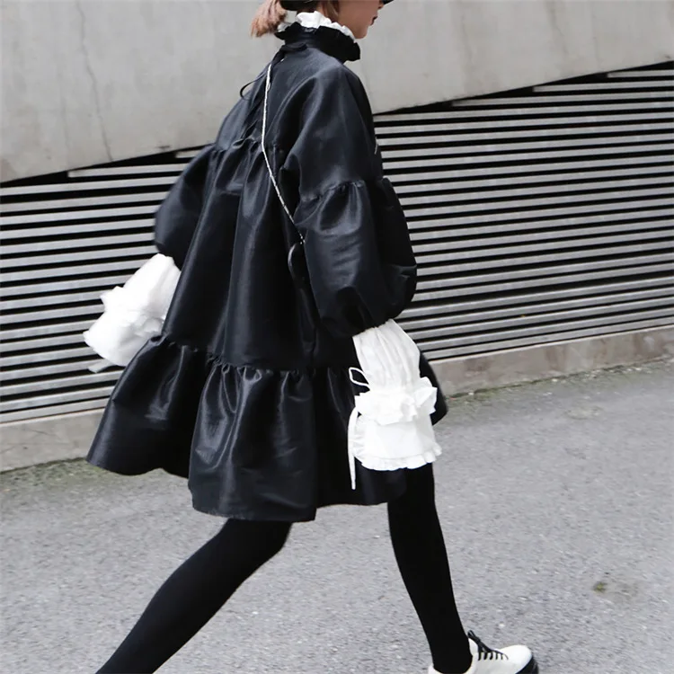 Женский базовый топ, пальто, готическая черная куртка с рукавами-фонариками, японский стиль 2020, весна-осень, оборки, подол размера плюс, свободная одежда для девочек со шнуровкой сзади