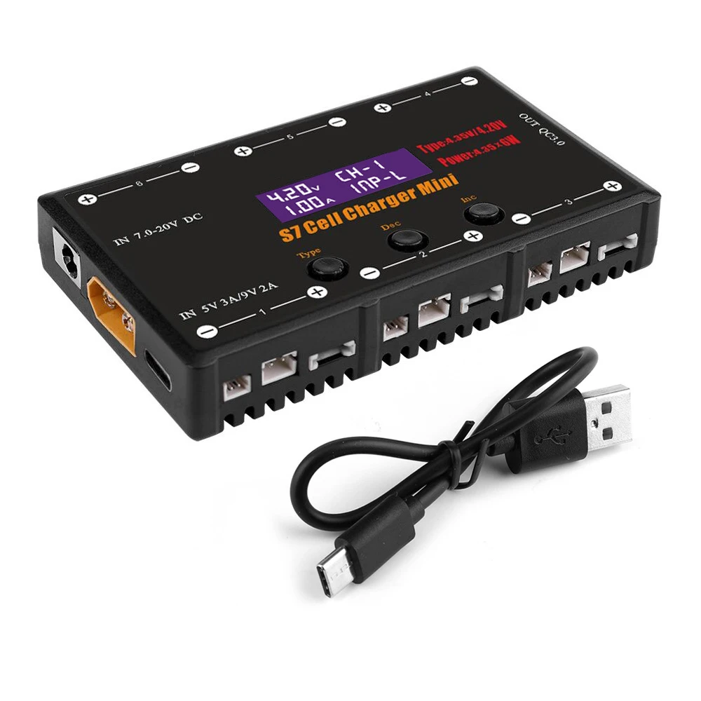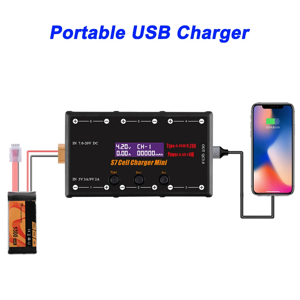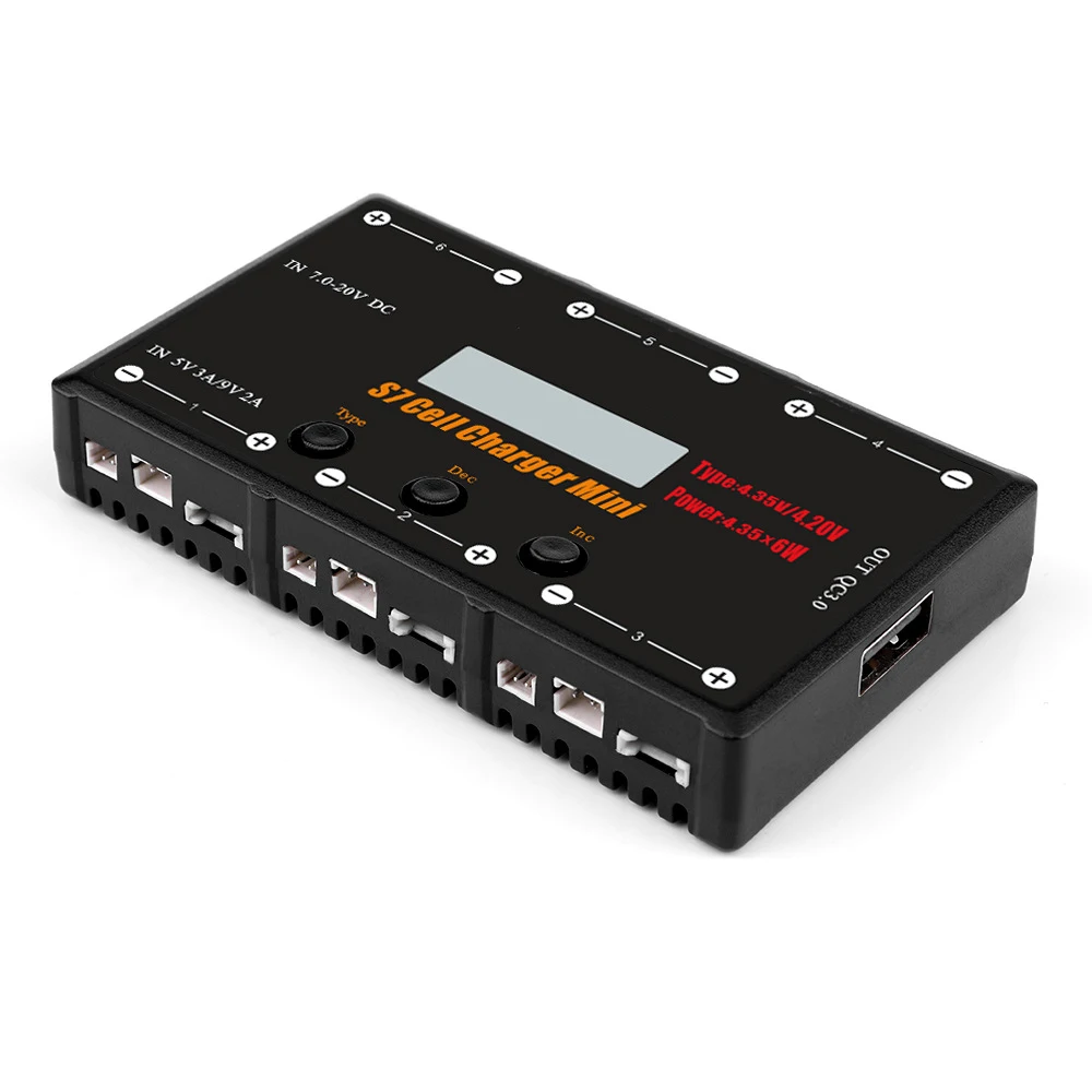 Зарядное устройство 1s поддерживает зарядку шести видов аккумуляторов 1s, что может удовлетворить ваши различные потребности в зарядке. Шесть независимых, но идентичных каналов, могут доставить 4,35 Вт на канал. Зарядное устройство предназначено для точной одновременной зарядки до пяти батарей. В зарядный ток никель-металл может быть отрегулировано от 0,1-1 Ампер. Напряжение на выходе USB