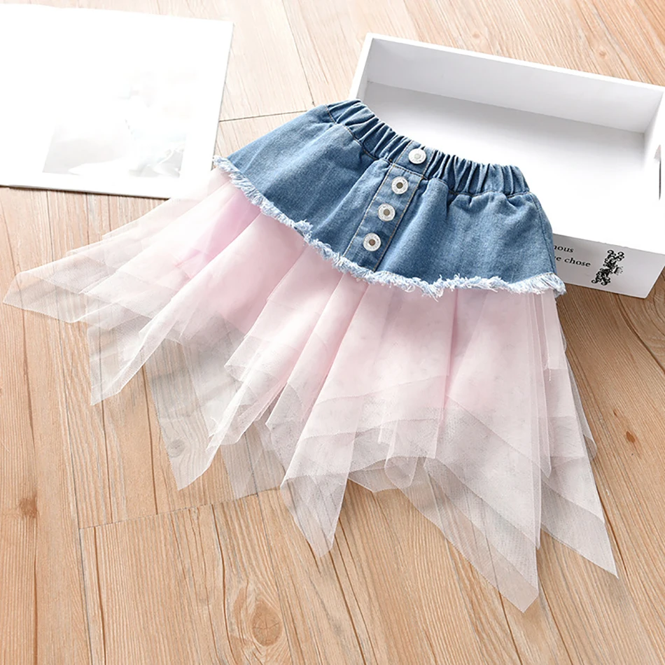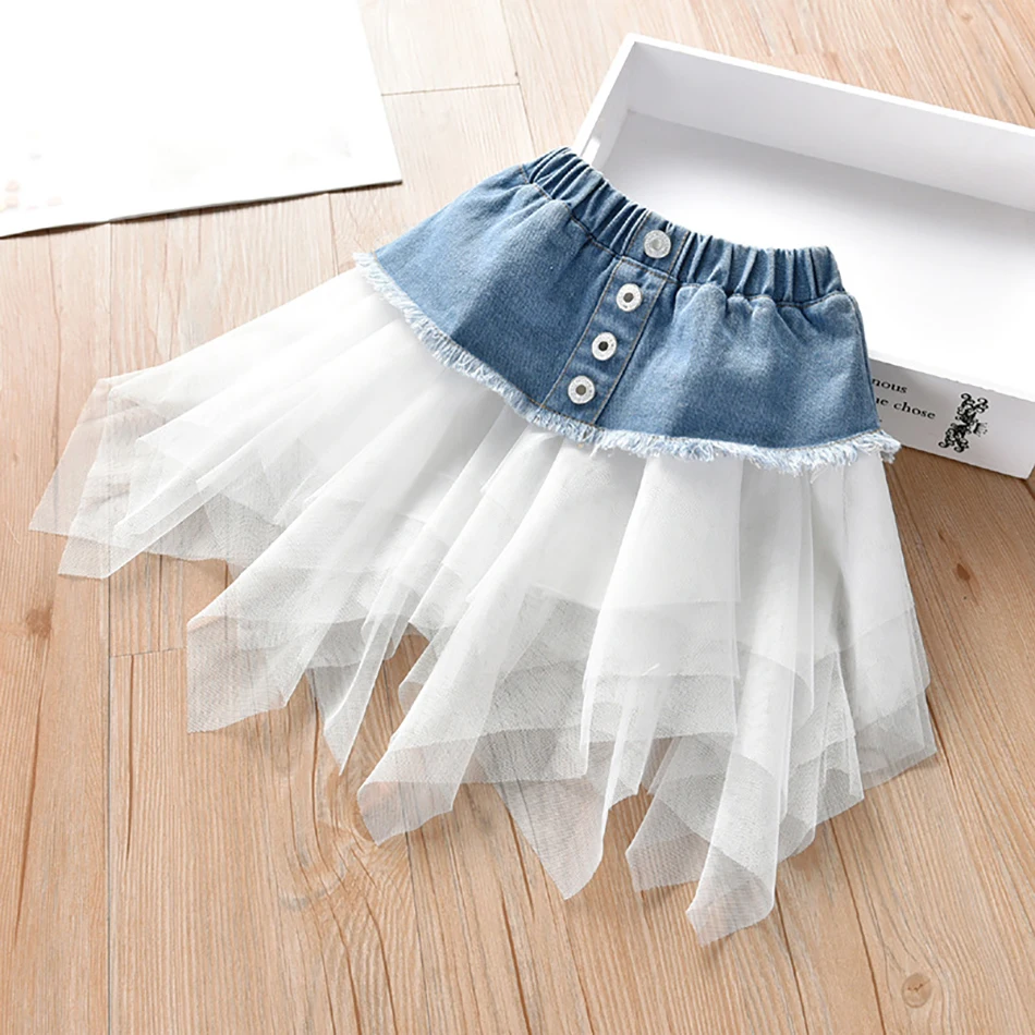 Название: милая летняя юбка для девочек; Джинсовая юбка с асимметричной сеткой; Модные детские юбки в Корейском стиле; Вечерние свадебные юбки; Детская одежда