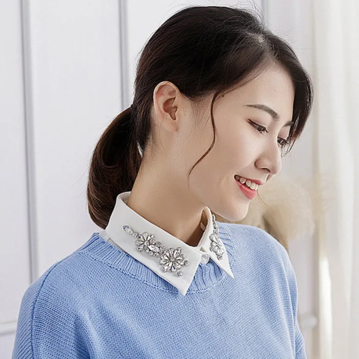 Женская рубашка со съемными отворотами, фальшивый воротник, украшенная стразами, ложная блузка, одежда, аксессуары feat889