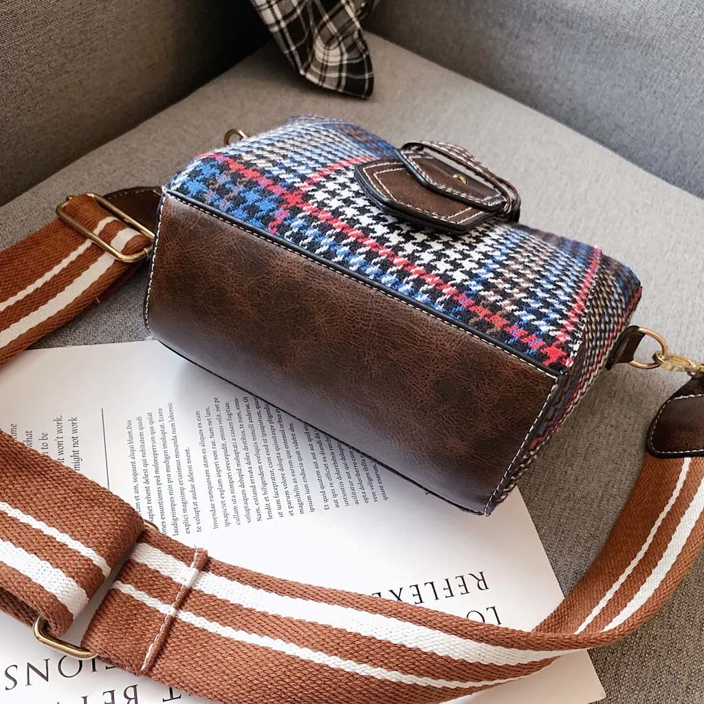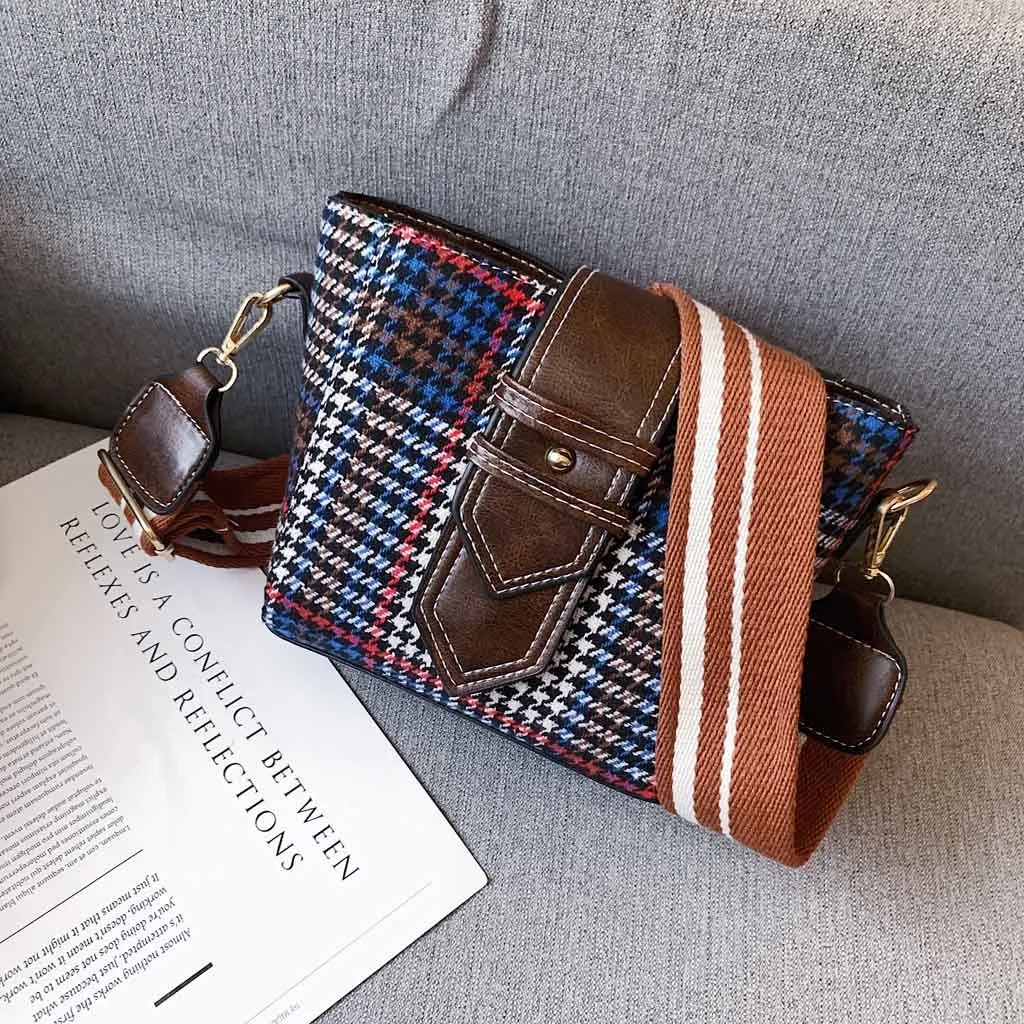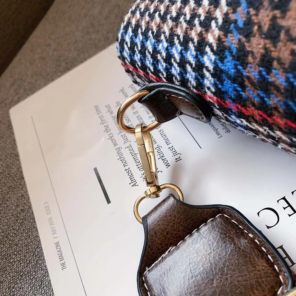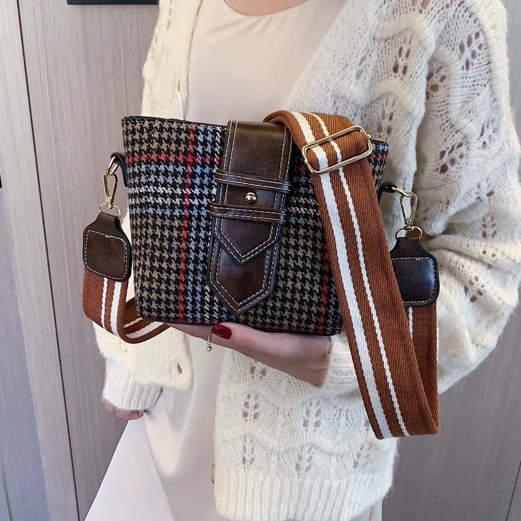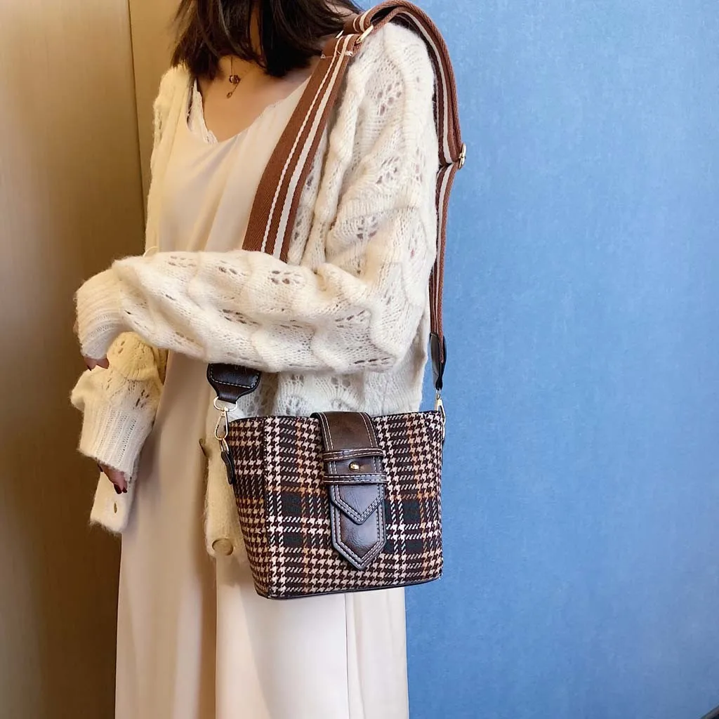 Женская шерстяная сумка-мессенджер с клапаном, новинка 2019, шерстяная сумка на плечо, клетчатая сумка-мессенджер, сумка-ведро на молнии, сумка для телефона, денег, сумочки