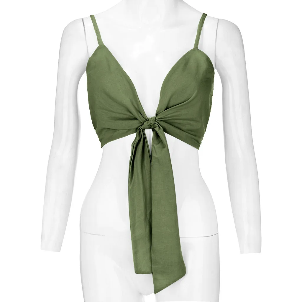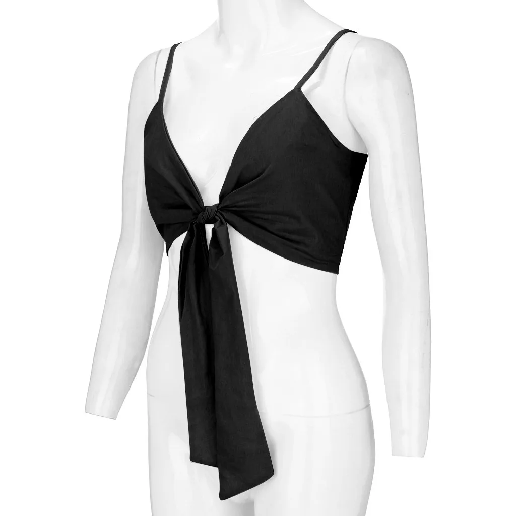 Женская летняя однотонная майка с v-образным вырезом без рукавов с бантом и открытой спиной