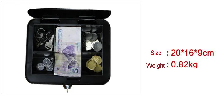1. Может использоваться дома, в офисе, в школе, на рынке и т. Д. 2. Привлекательный внешний вид с уникальным дизайном, светильник и прочным блеском. 3. Прочная конструкция с закругленными углами. Усиленная фиксирующая пластина. 4. С ручкой для переноски из нержавеющей стали. 5. Съемный лоток имеет 6 секций для монет. 6. Оснащен высоким качеством Цилиндрического Замка и поставляется с двумя ключами.