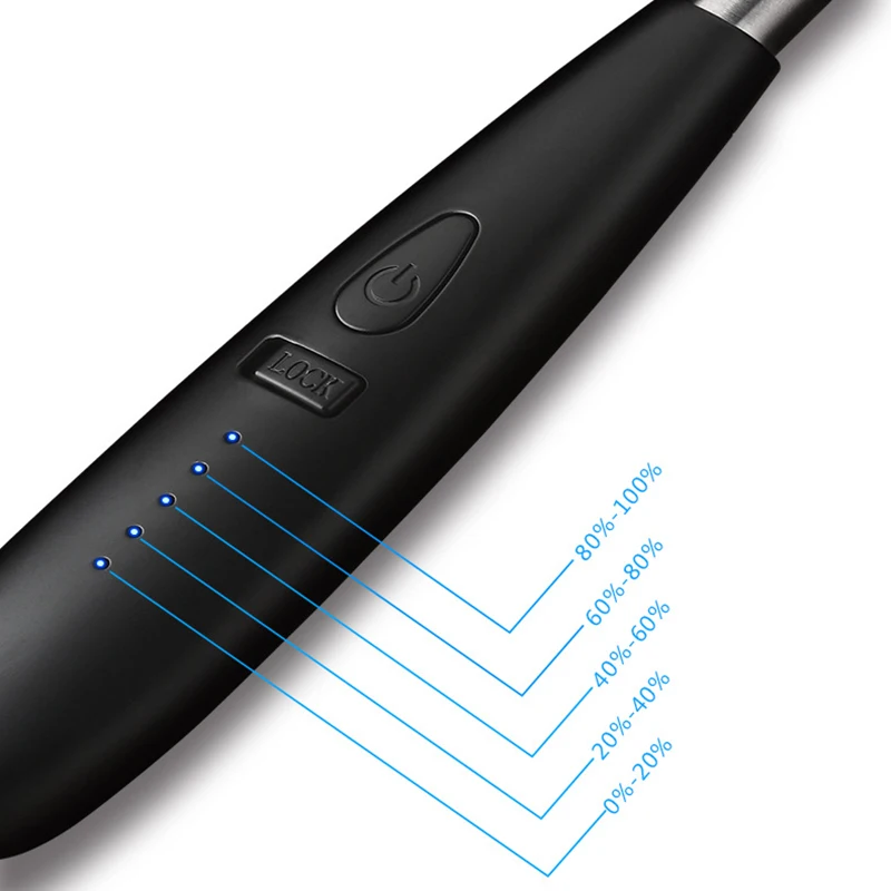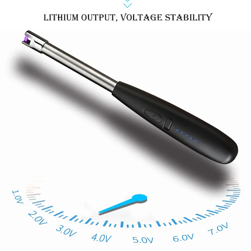 -Индикатор заряда батареи: Зажигалка может отображать оставшийся объем аккумулятора. При включении 5 светодиодных ламп он полностью заряжен.