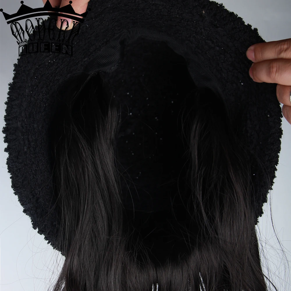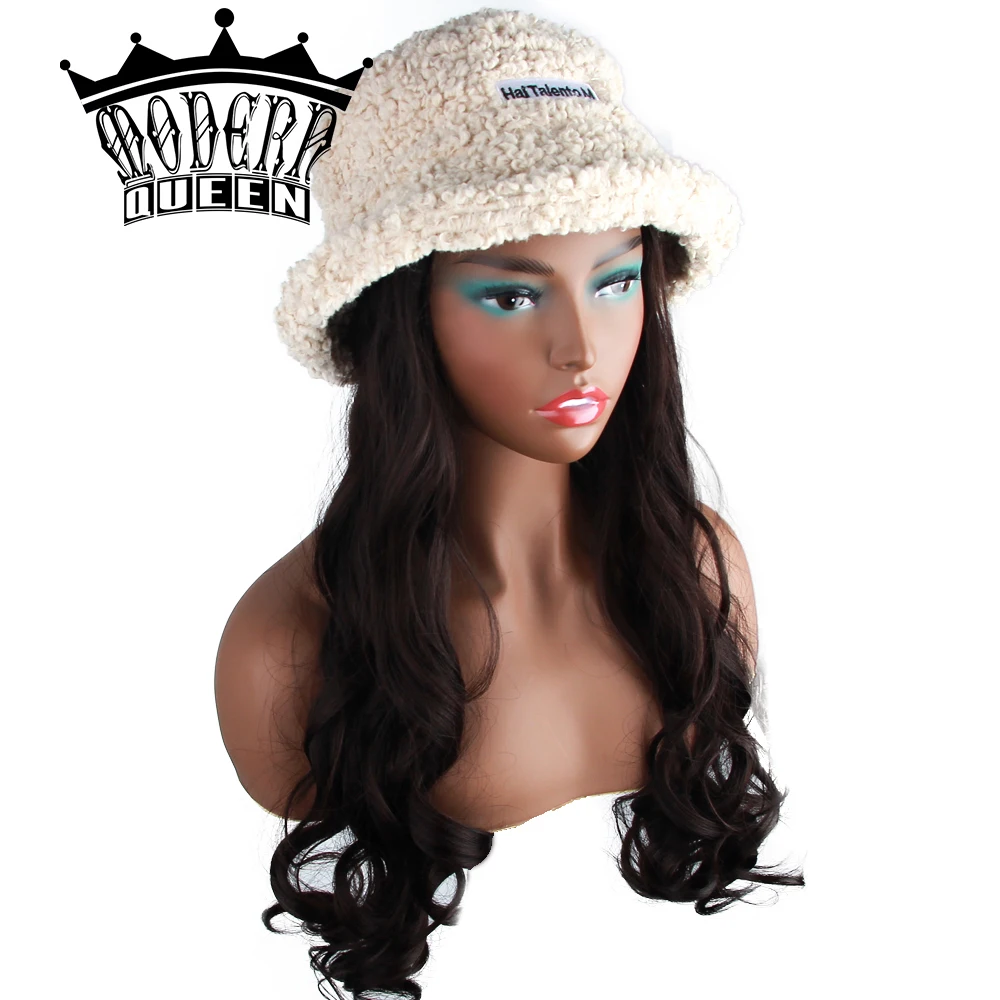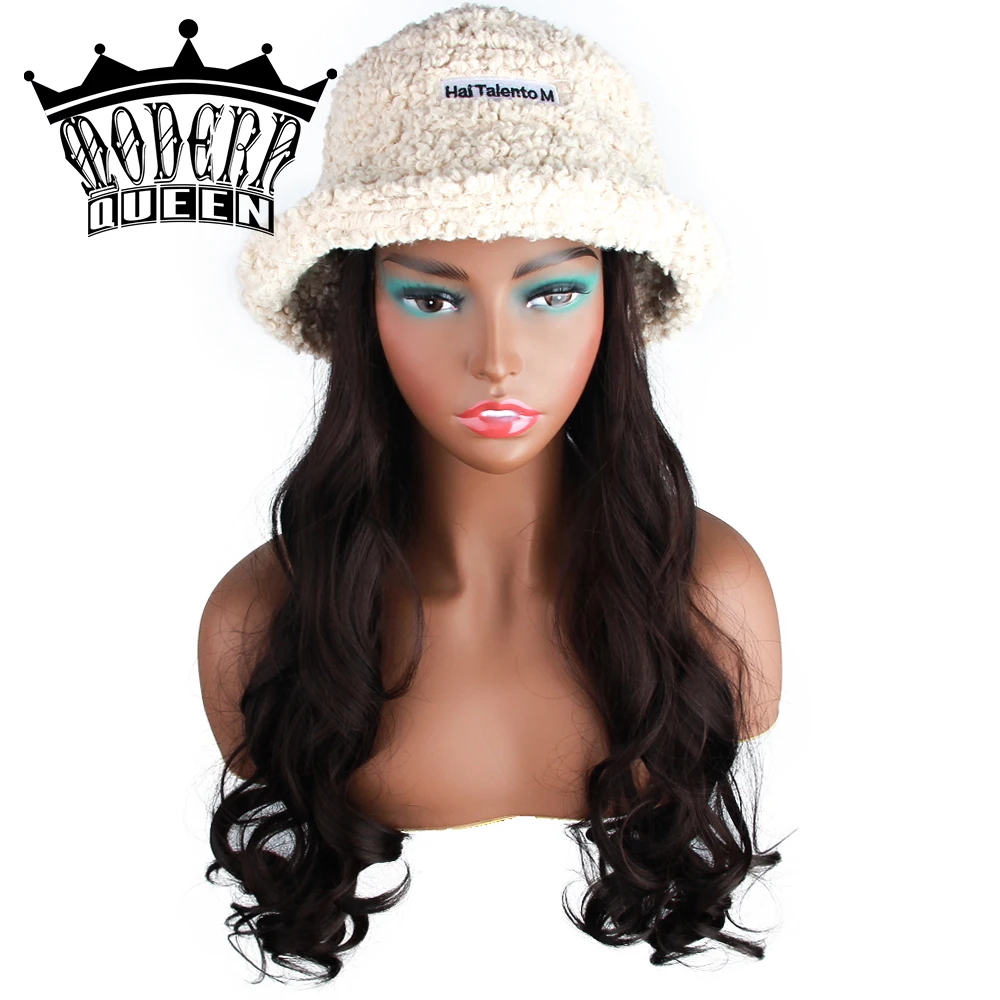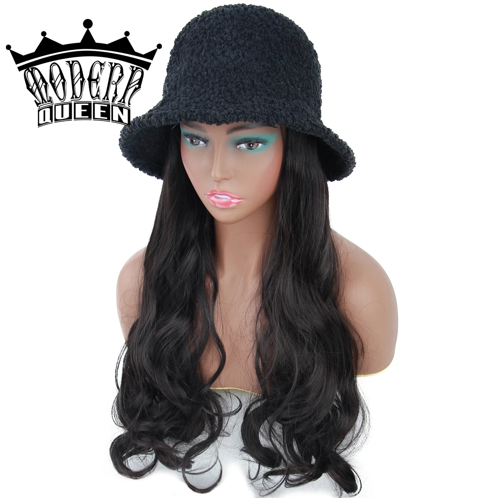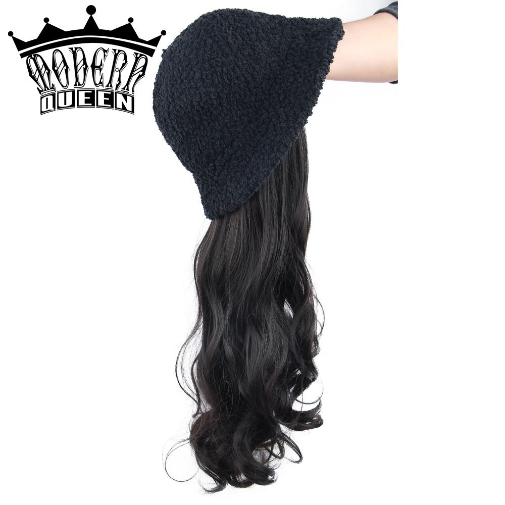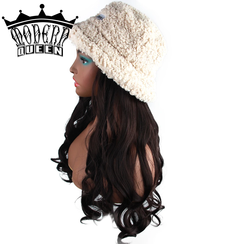 Современная королева 22 inchLong волнистый рыбацкий головной убор шерстяной парик зимняя теплая шапка синтетические волосы с вязаной шапочкой парик все-в-одном головной убор шапка капот для девочек покупки