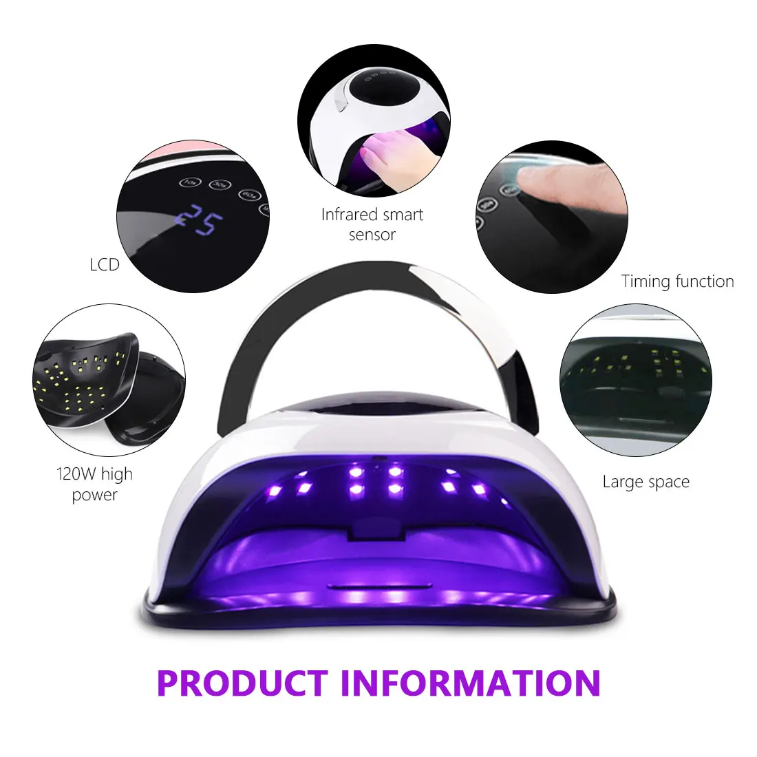 Отличительные черты товара: 1. Профессиональная лампа для салона: она может полировать большинство видов гель-лака для ногтей: УФ-гель для ногтей, светодиодный гель для ногтей, гель для ногтей, скульптурный гель для ногтей, акриловый лак для ногтей и стразы с драгоценными камнями, удовлетворить все ваши желания к лаку для ногтей.