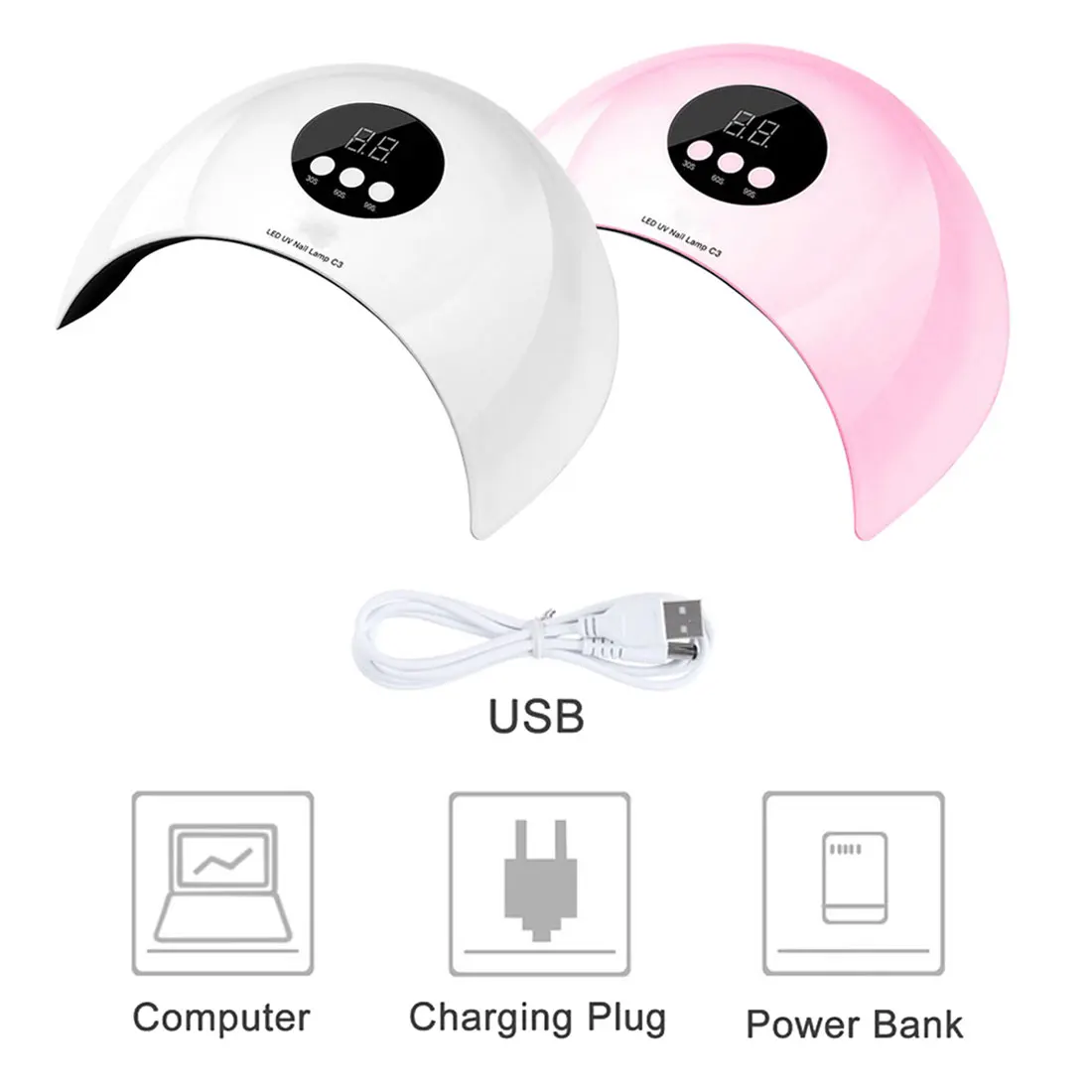 3. Дизайн usb-порта: портативная светодиодная УФ-лампа для ногтей может быть подключена к компьютеру, powerbank и мобильный телефон зарядное устройство, что позволяет сделать ваш маникюр в любое время и в любом месте.