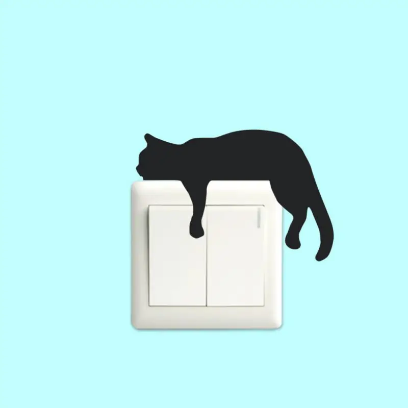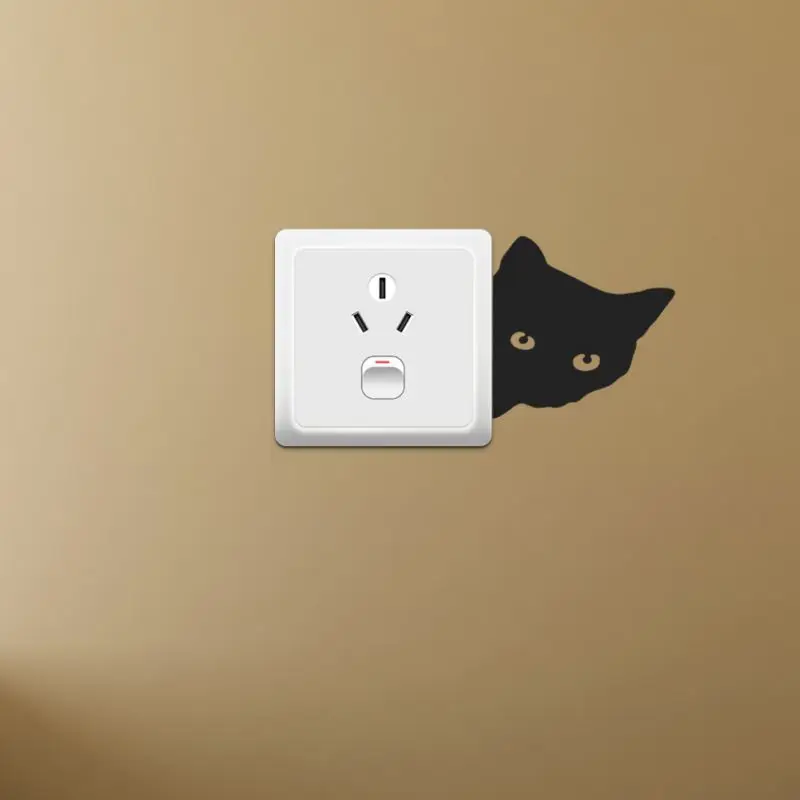 Настенные наклейки с рисунком черного кота, светильник, переключатель, декор, наклейки, художественная роспись, украшения для детской комнаты
