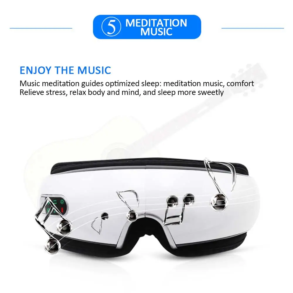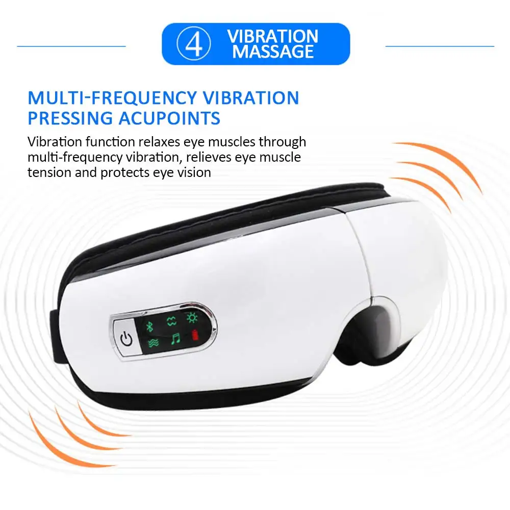Смарт-давление воздуха, постоянная температура горячего компресса, акупунктурный массаж, вибрационный массаж, медитация музыки, умный Bluetooth, 180 градусов складной, 5 режимов Этот продукт представляет собой набор горячего сжатия, вибрации, натирания давления в одном приборе для глаз. Этот инструмент для ухода за глазами применяет новую концепцию барометрического давления для век, чтобы сделать его более гуманным. Под контролем микрокомпьютерного чипа, давление воздуха может использоваться для массажа всех глаз, для регулировки эффекта мышц вокруг глаз, для улучшения кровообращения глаз и снятия усталости глаз. Прибор для ухода за глазами через горячий сжатие глаз, вибрация, разминающий эффект касания глаз. Инструмент для ухода за глазами внутри воздушного мешка, через надувной, газоразрядный процесс между разумным сочетанием вокруг массажа, В то же время с внутренним вибромотором и горячим сжимающим роль человеческого глаза, чтобы произвести полный спектр гуманного массажного эффекта.