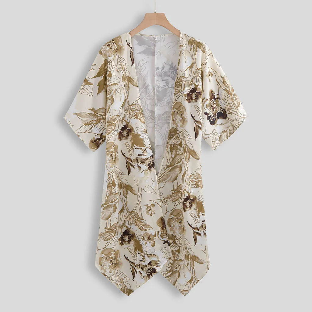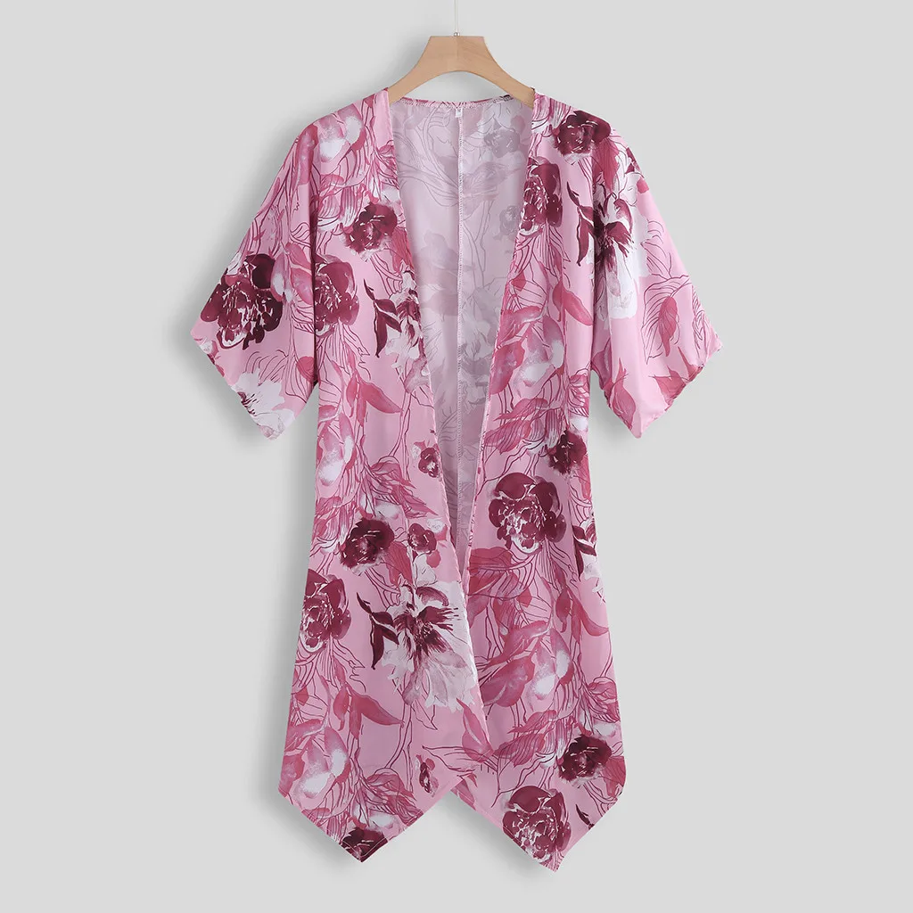 3.ПоловинаРукав,ДлинныйДлина,Затяните на застежке,Цветочный принт,Асимметричный Подол, Открытая спереди.Милый и милый, очаровательный и привлекательный. ЭтоСтанет прекрасным дополнением к офисному или летнему наряду.