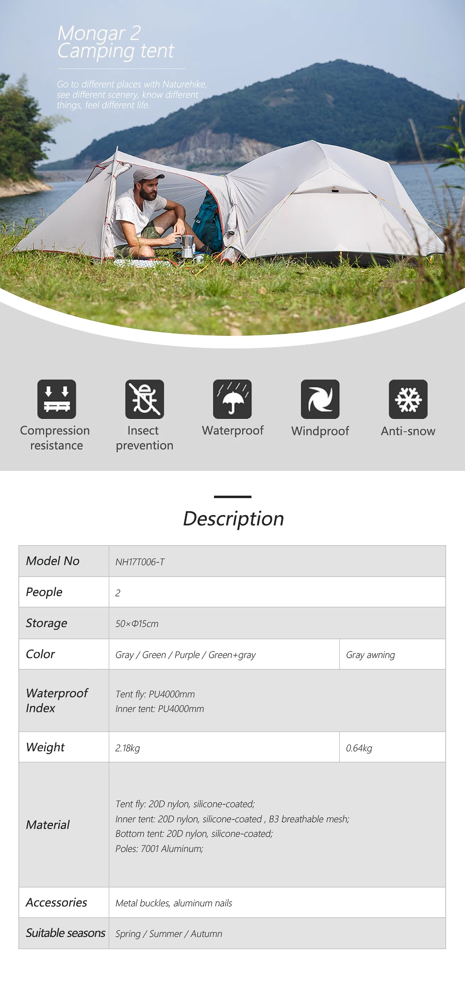 Внутренняя палатка: B3 сетка + Бархатная ткань + 20D нейлоновая Водонепроницаемая клетка 4000 мм