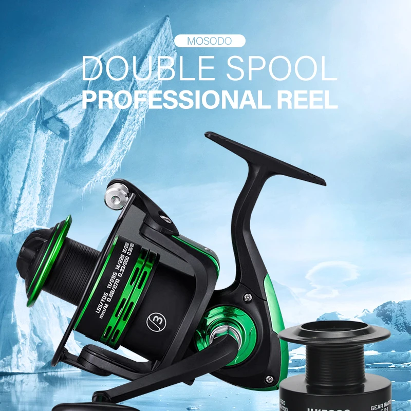 Mosodo спиннинговая Рыболовная катушка из металла, двойная леска, катушка 8 кг, ручка из нержавеющей стали, 3 подшипника, зеленая рыболовная левосторонняя