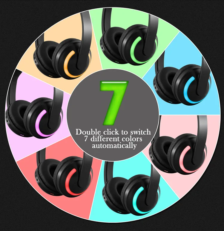 В правой части наушников есть кнопка «светильник», чтобы вы могли контролировать светильник; Долго нажимайте его, и светильник включится; Нажмите его один раз, и он изменит цвет; дважды нажмите на него, и семь цветов будут мигать поочередно; Долго нажимайте его снова, и светильник выключится.