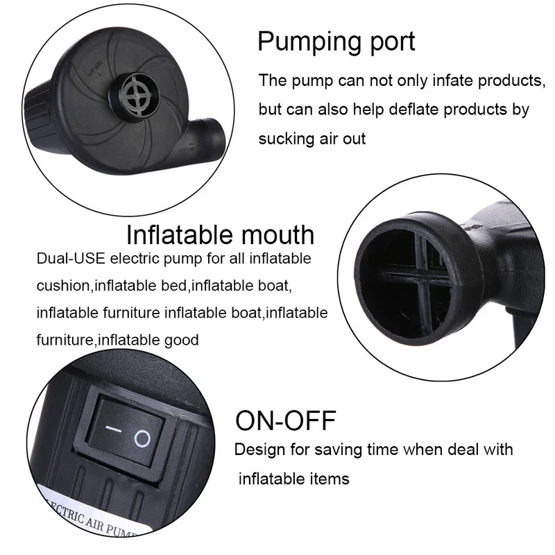 3 насадки разного размера позволяют надувать и сдувать различные предметы;