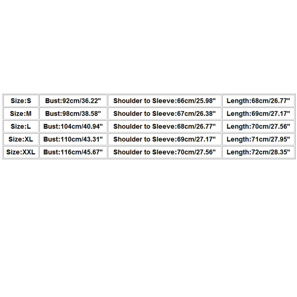 Размеры Обхват груди От плеча до рукава Длина S 92 см/36,22'' 66 см/25,98'' 68 см/26,77'' М 98 см/38,58'' 67 см/26,38'' 69 см/27,17'' L 104 см/40,94'' 68 см/26,77'' 70 см/27,56'' XL 110 см/43,31'' 69 см/27,17'' 71 см/27,95'' XXL 116 см/45,67'' 70 см/27,56'' 72 см/28,35''
