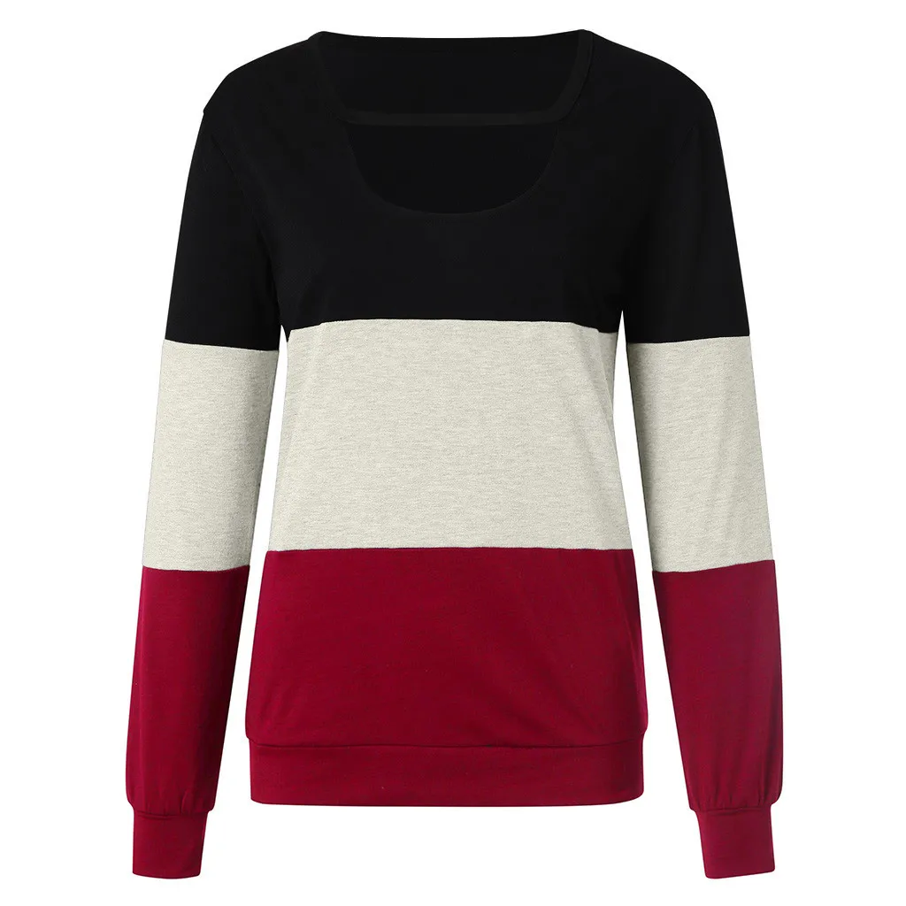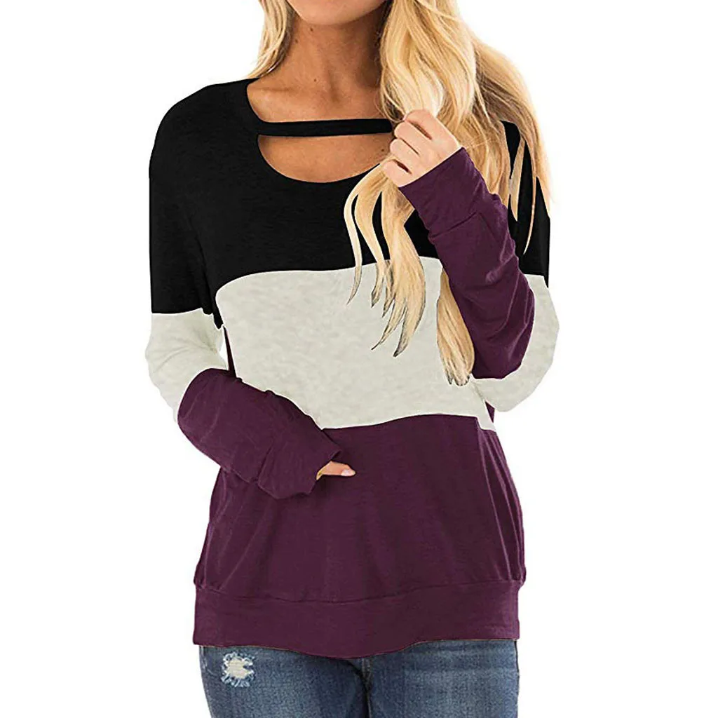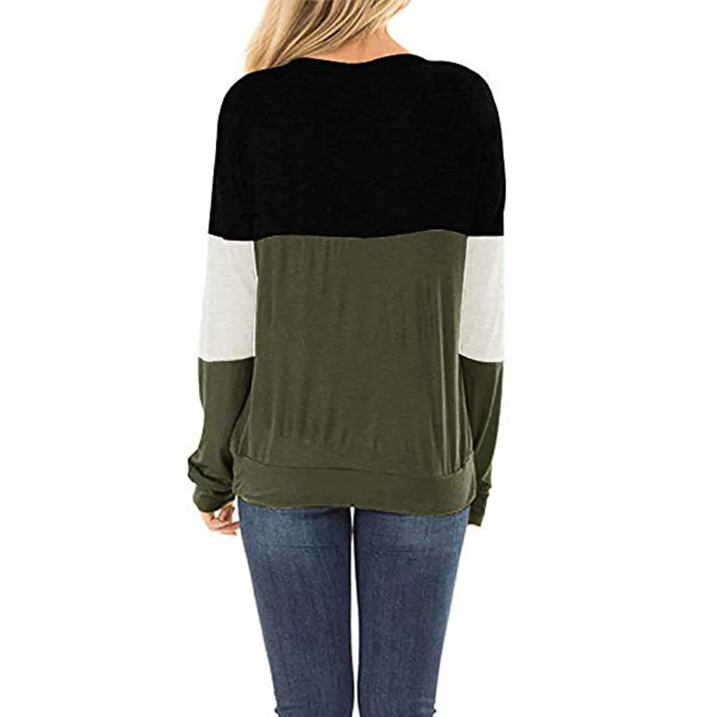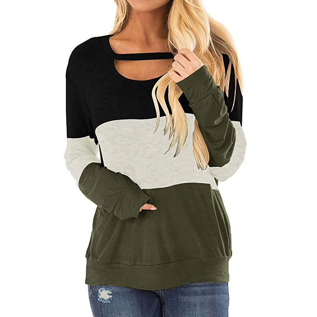 Женские футболки-туники с вырезом на груди, цветная туника с длинными рукавами, Лоскутная Одежда с круглым вырезом для женщин, camisa feminina 2020