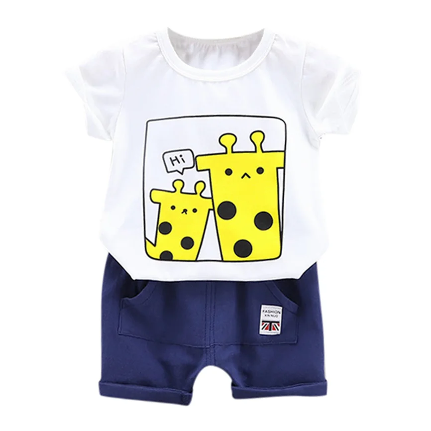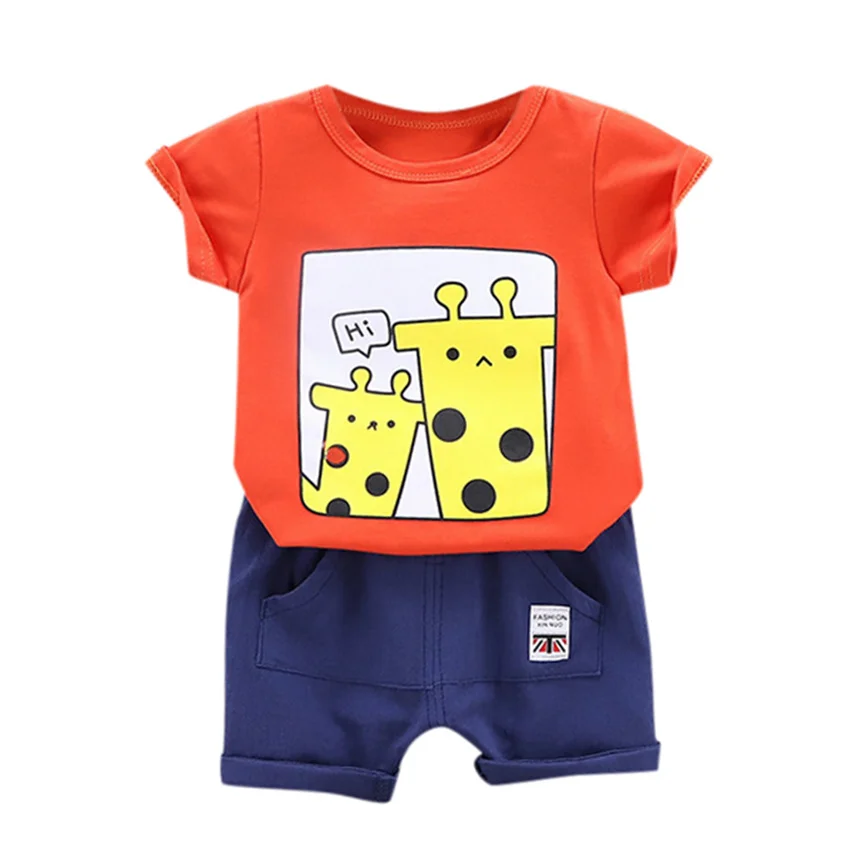 Футболка с короткими рукавами и рисунком животных для маленьких мальчиков топы + шорты, летний комплект