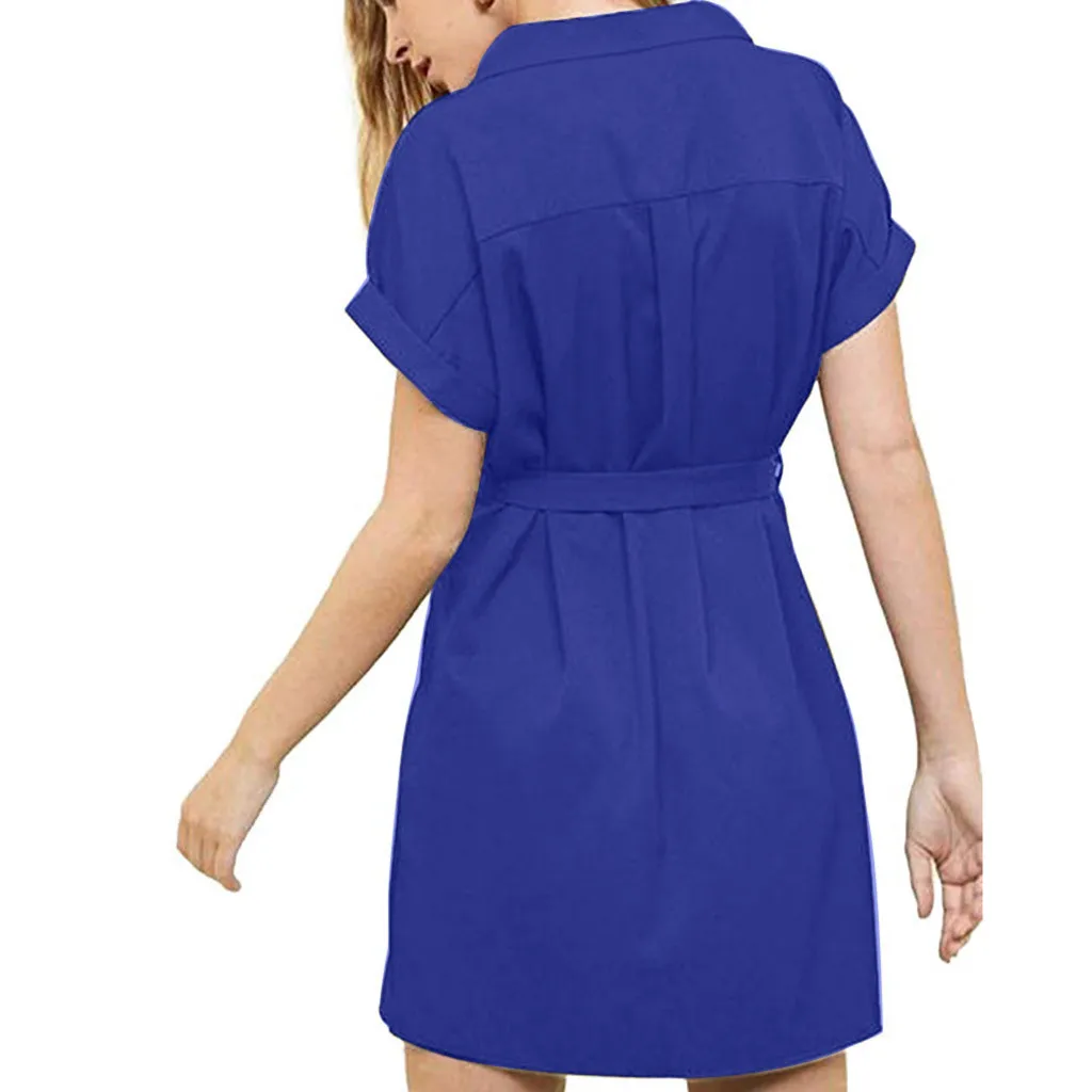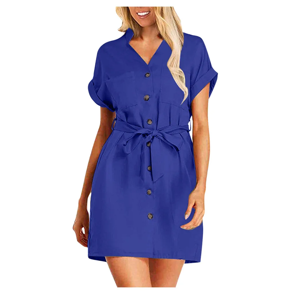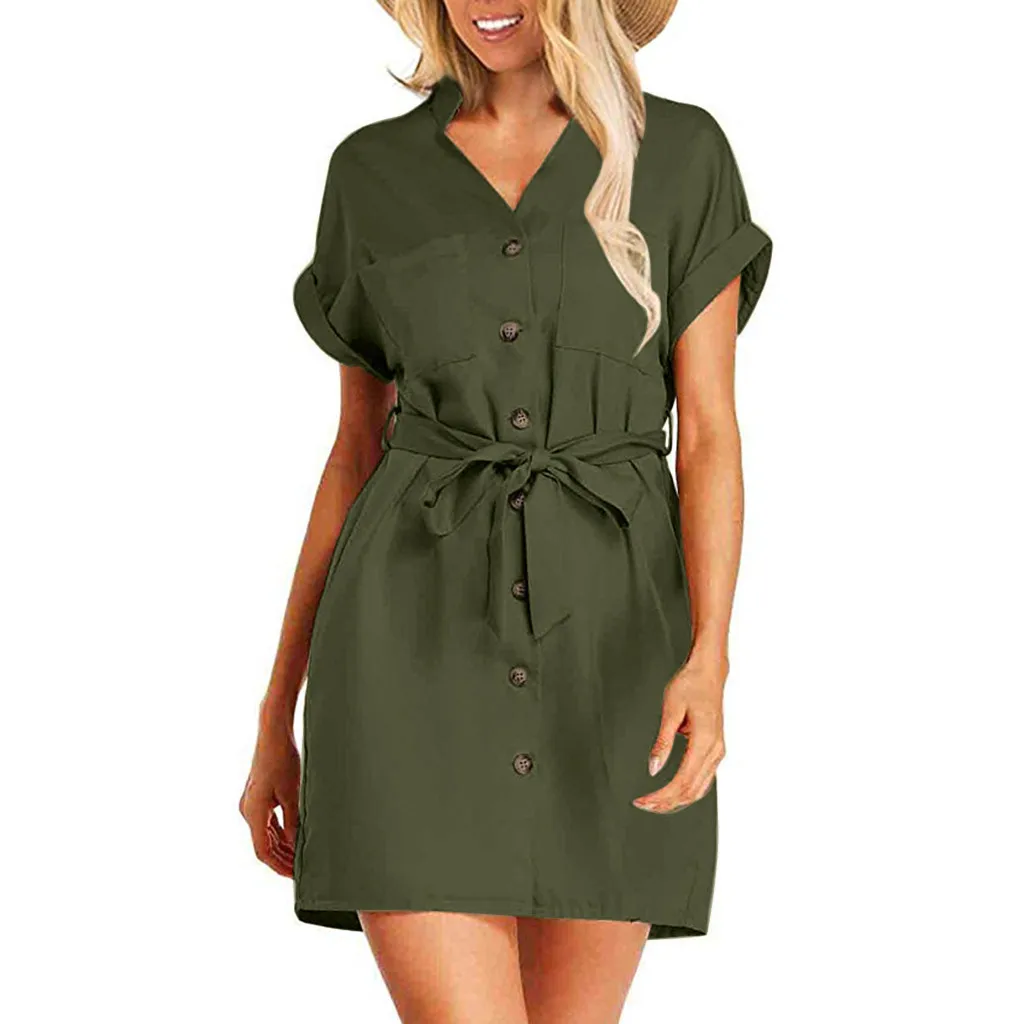 Женское платье из хлопка и льна с коротким рукавом и v-образным вырезом