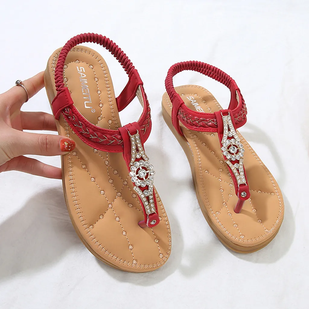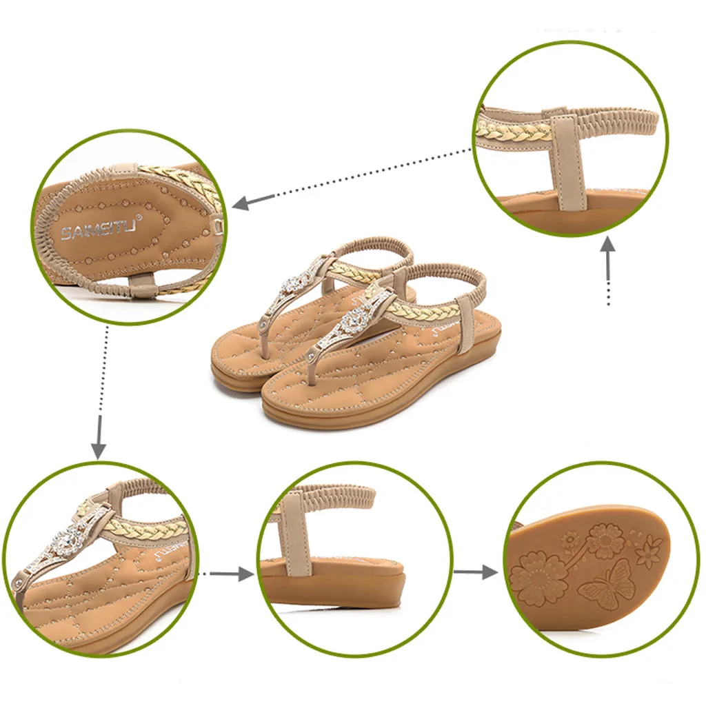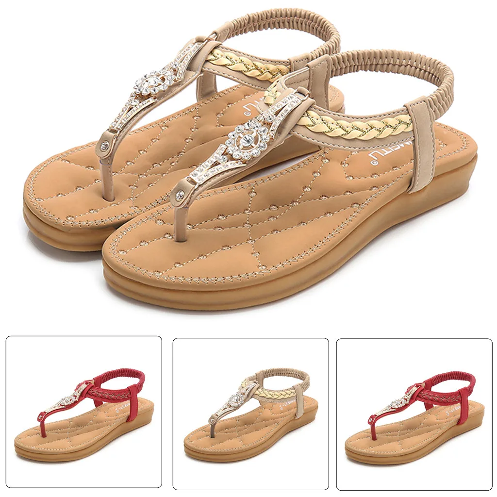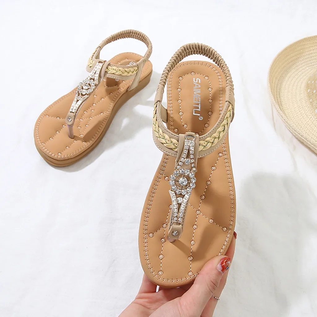 Женская обувь с кристаллами; повседневная обувь на плоской подошве; эластичная лента; пляжная обувь в богемном стиле; сандалии