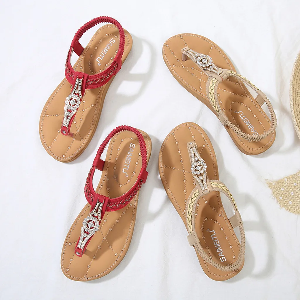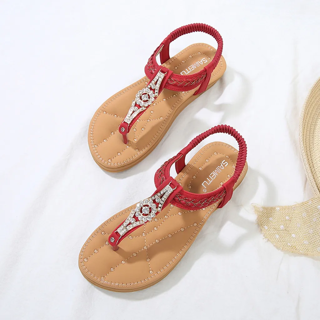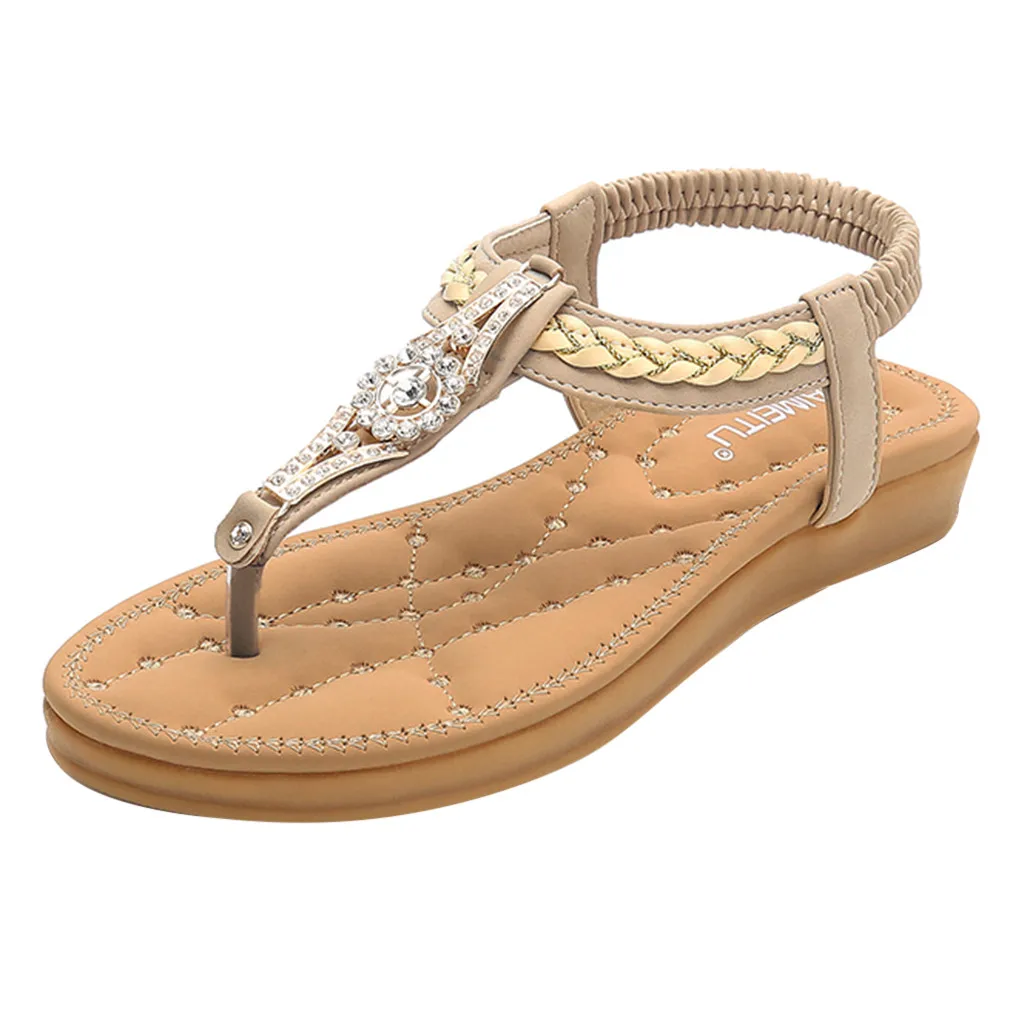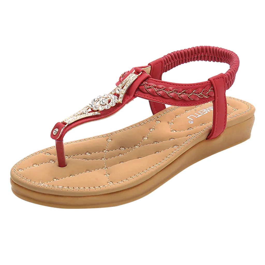 Женская обувь с кристаллами; повседневная обувь на плоской подошве; эластичная лента; пляжная обувь в богемном стиле; сандалии