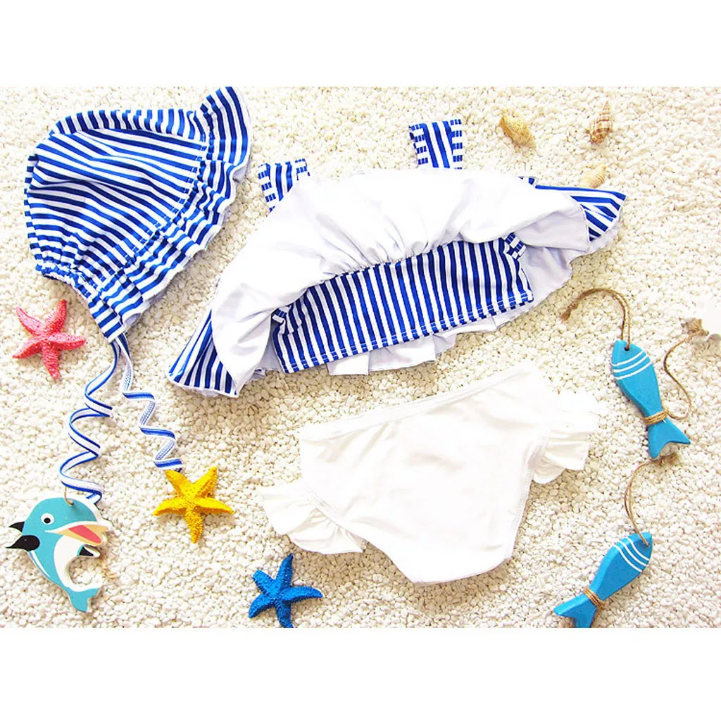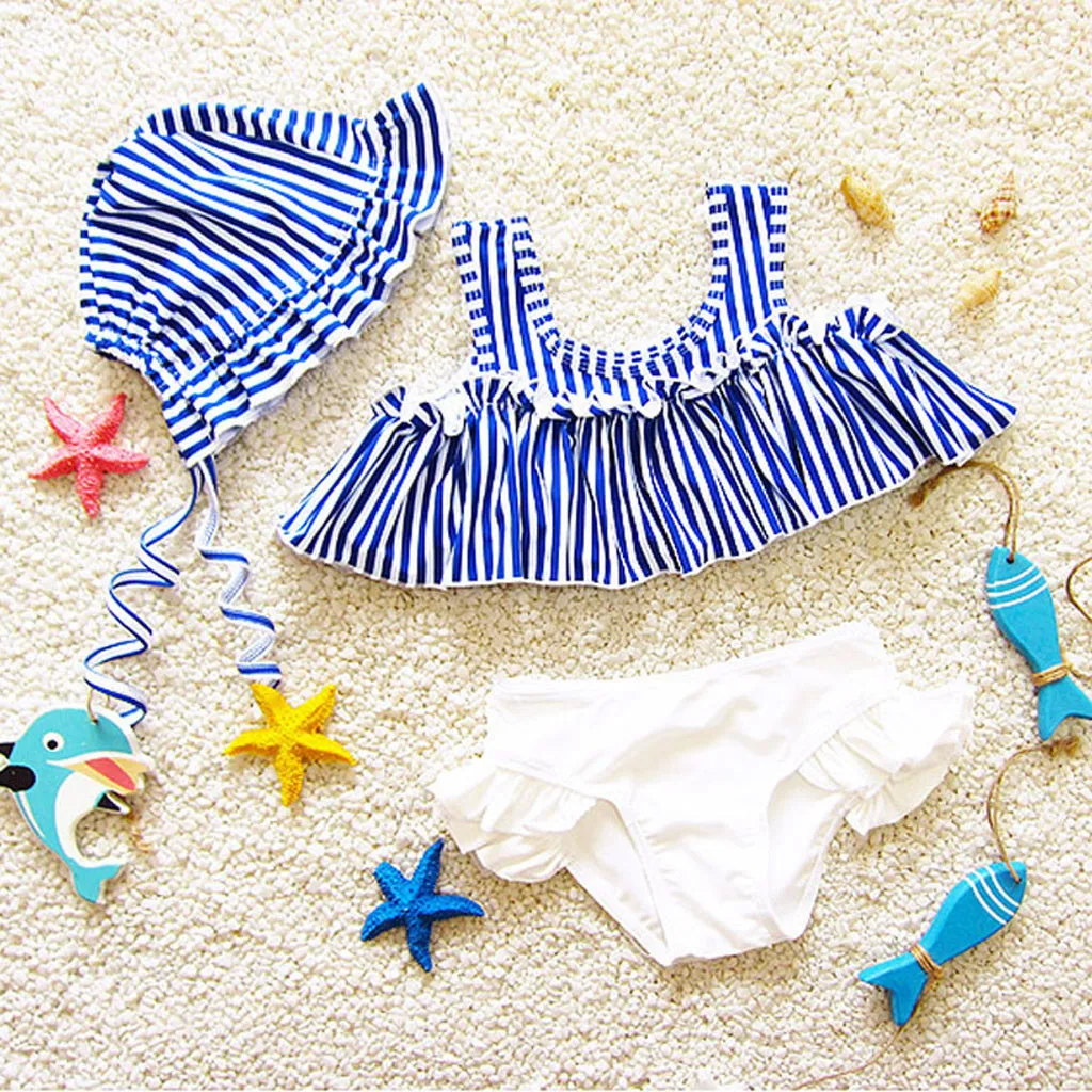 Летний купальный костюм для маленьких девочек; купальный костюм с шапочкой; комплект бикини