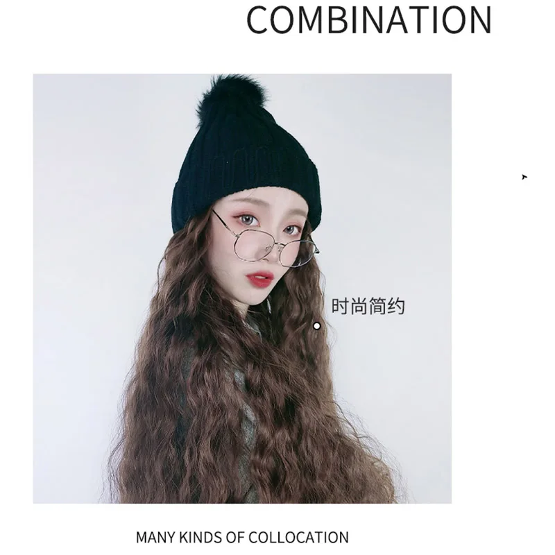Корейская версия осенне-зимней сетки красный Джокер с меховым помпоном шерстяная шапка Зимняя Студенческая Ins вязаная Кукуруза Пермь парик шапка один Название продукта: головной убор Материал изделия: высокотемпературный синтетический парик + комбинация шляпы Длина стрейч: 60 см Вес: 200 г Может быть окрашена или нет: выдерживает температуру ниже 110 градусов Цельсия и не может быть окрашена.